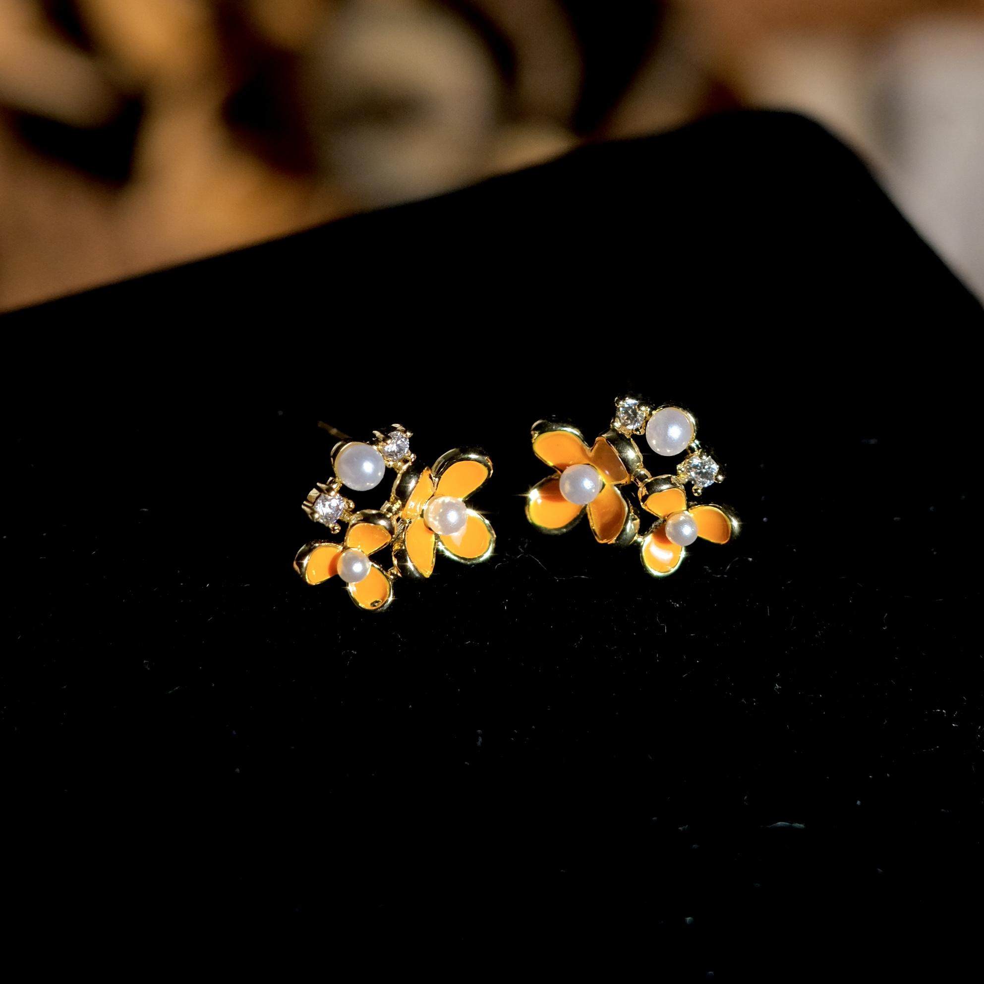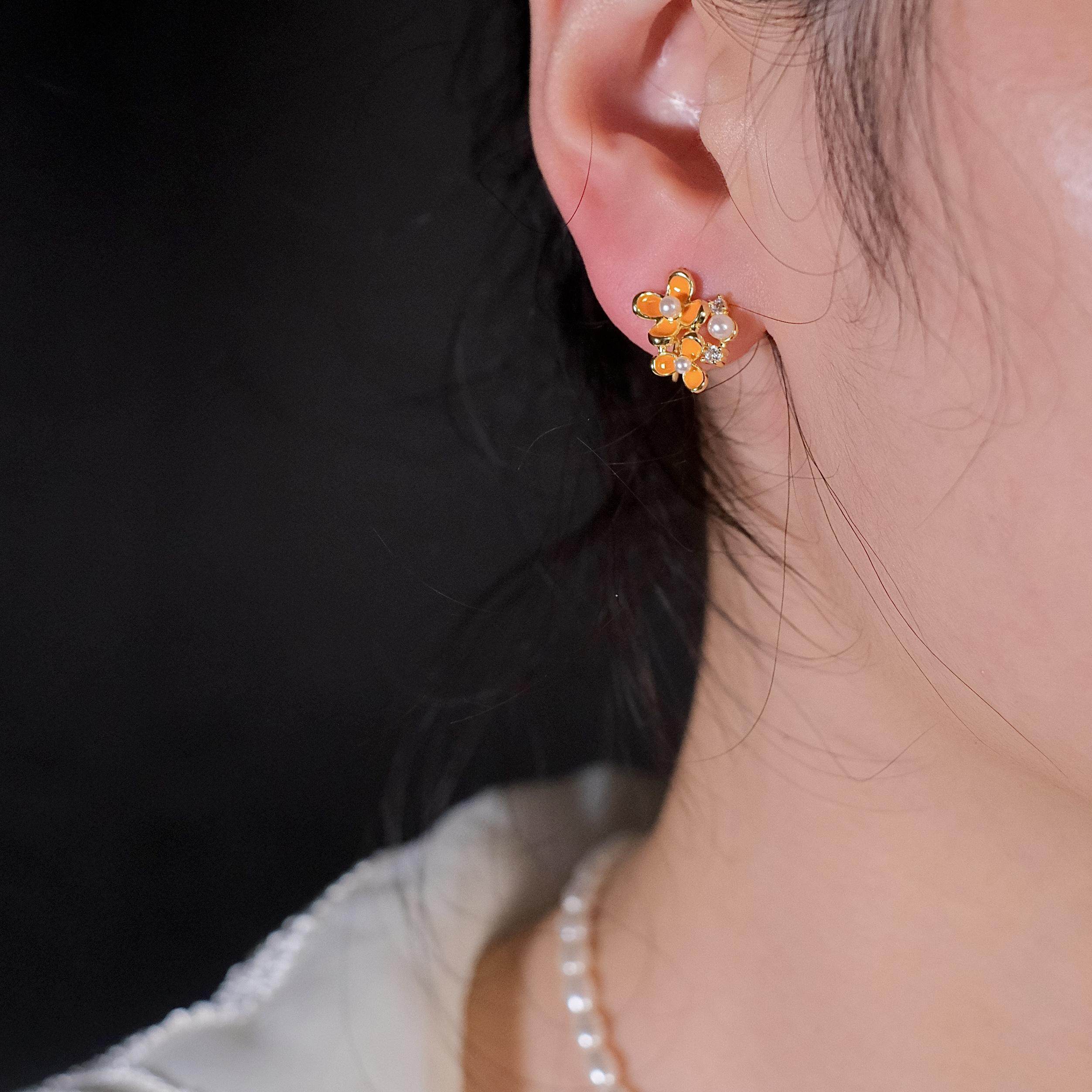 《折桂》秋冬复古文艺新中式小巧精致桂花珍珠耳钉耳环耳夹无耳洞