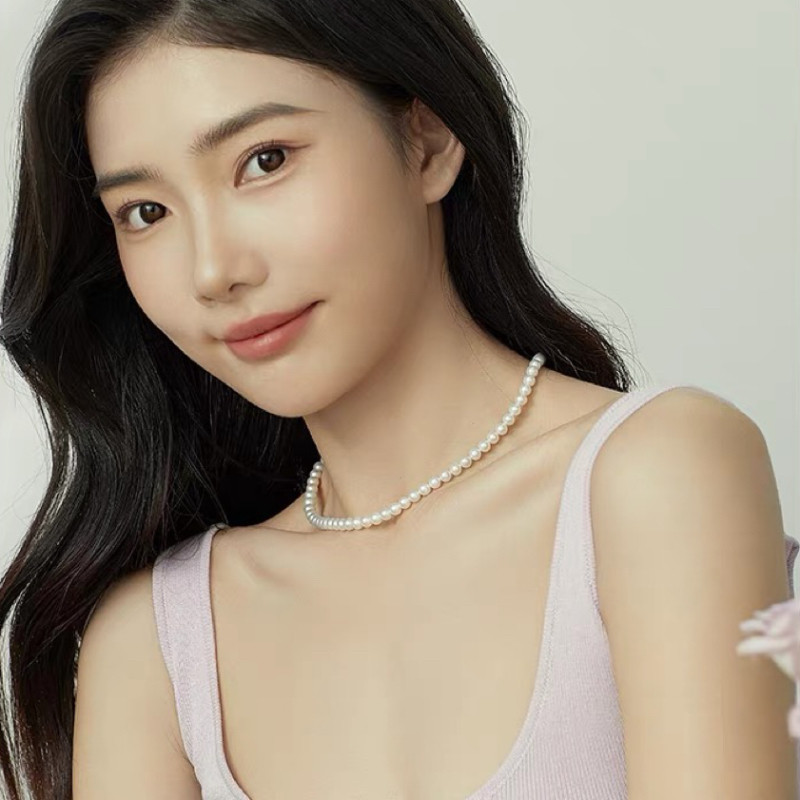 诸暨淡水珍珠项链正圆baby珠链女18K金小米珠颈链优雅精致锁骨链