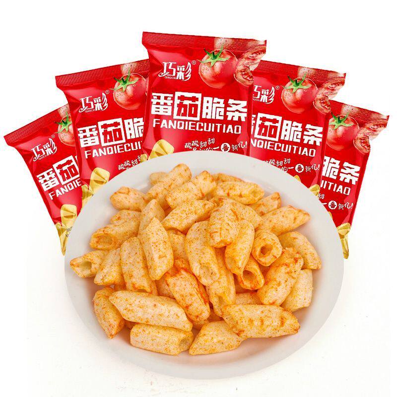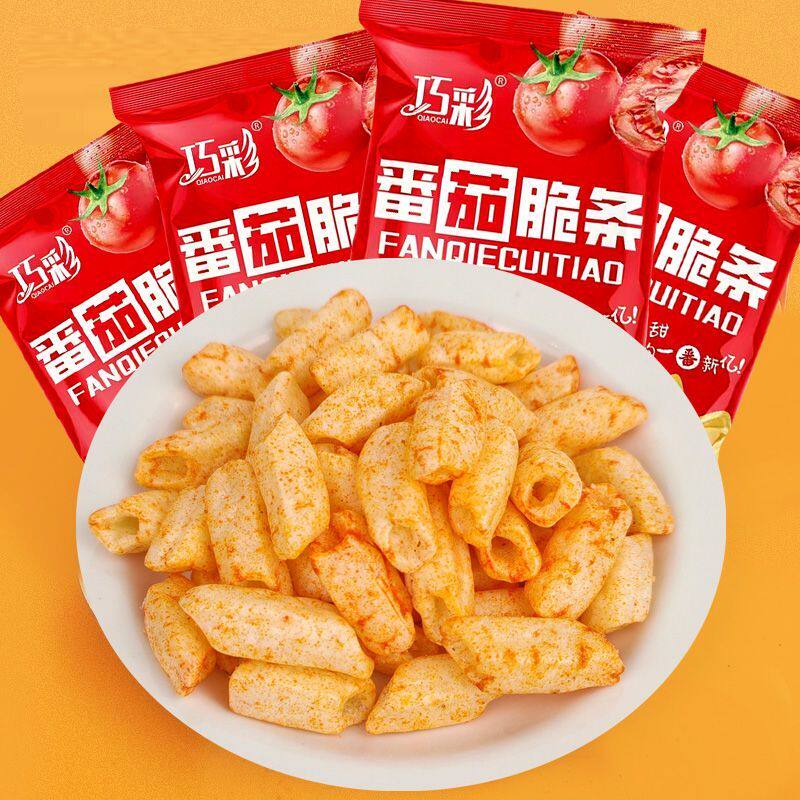 巧彩空心番茄脆条薯条薯片虾条休闲小零食膨化食品批发玉米办公室