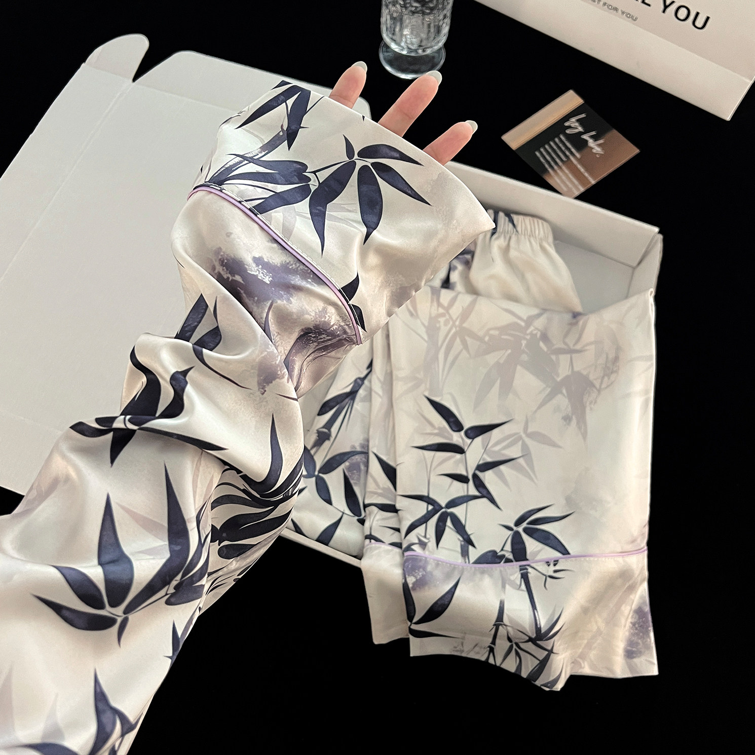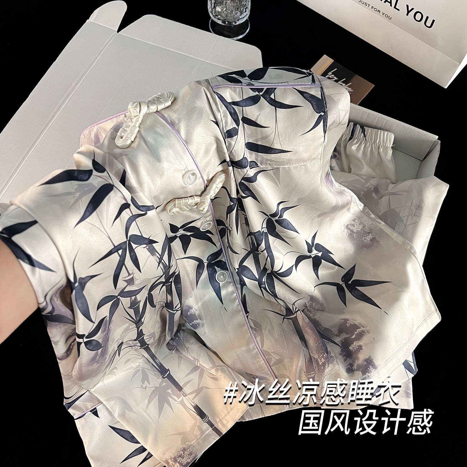 冬梧中式水墨冰丝睡衣女春秋新款甜美网红少女长袖外穿家居服套装