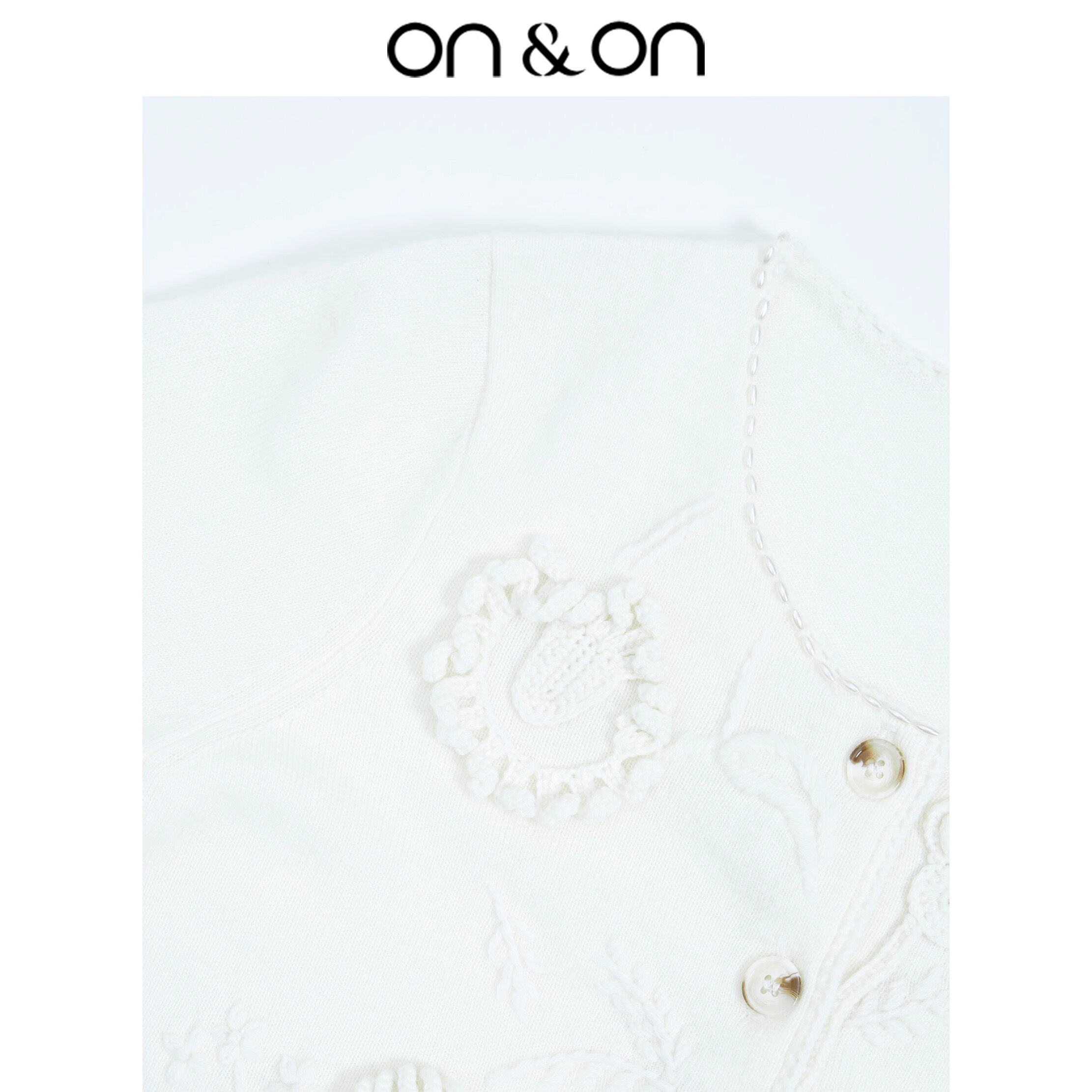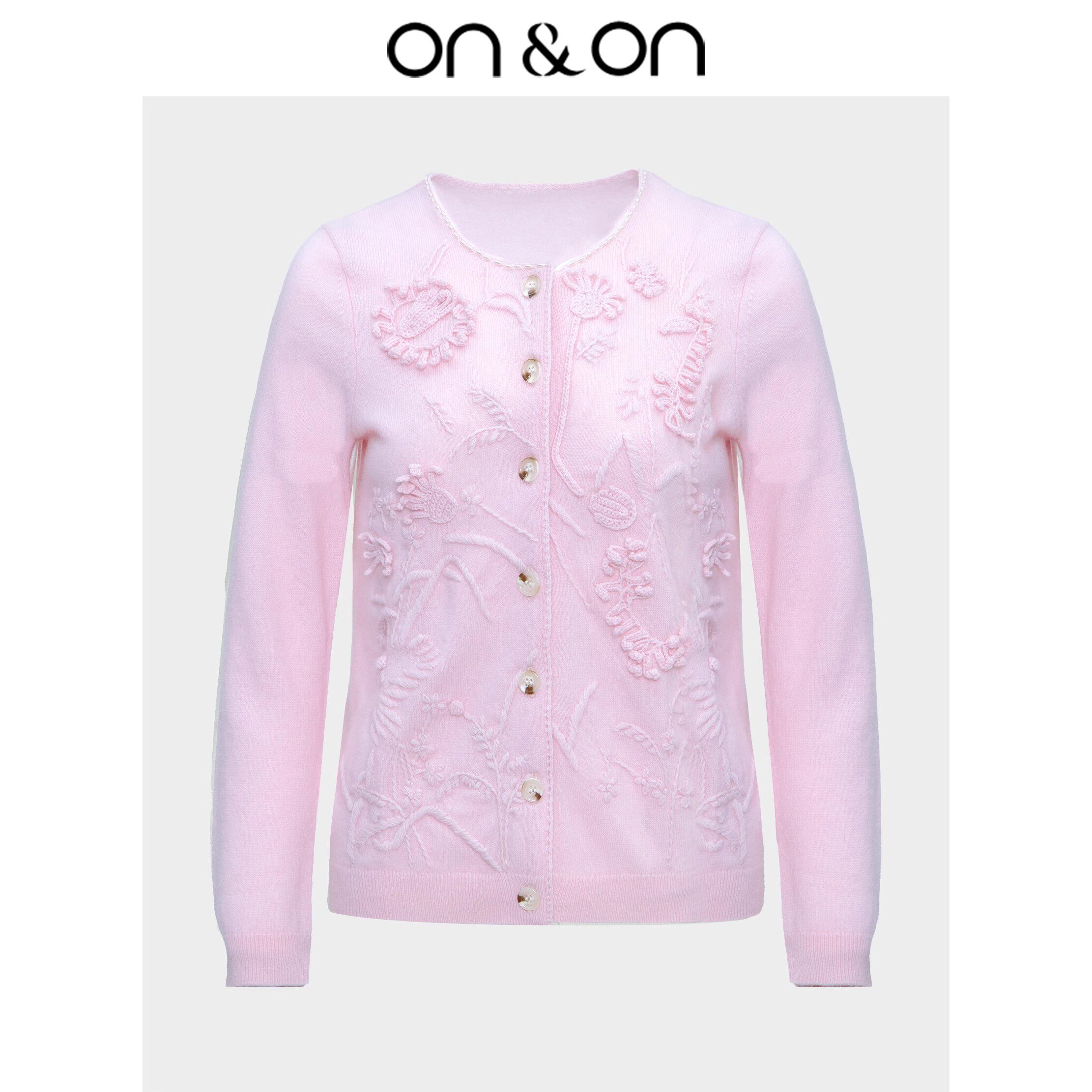 ON&ON/安乃安2026春季新款立体钩花圆领刺绣单排扣钉珠羊绒开衫