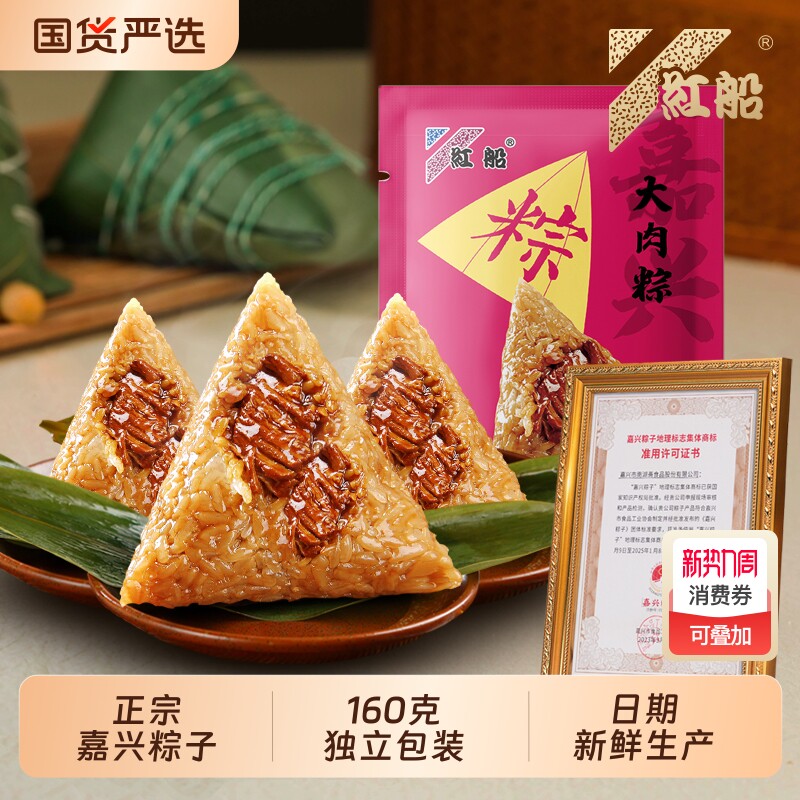 【160克/只】嘉兴红船粽子大肉粽手工新鲜真空咸棕子散装团购批发