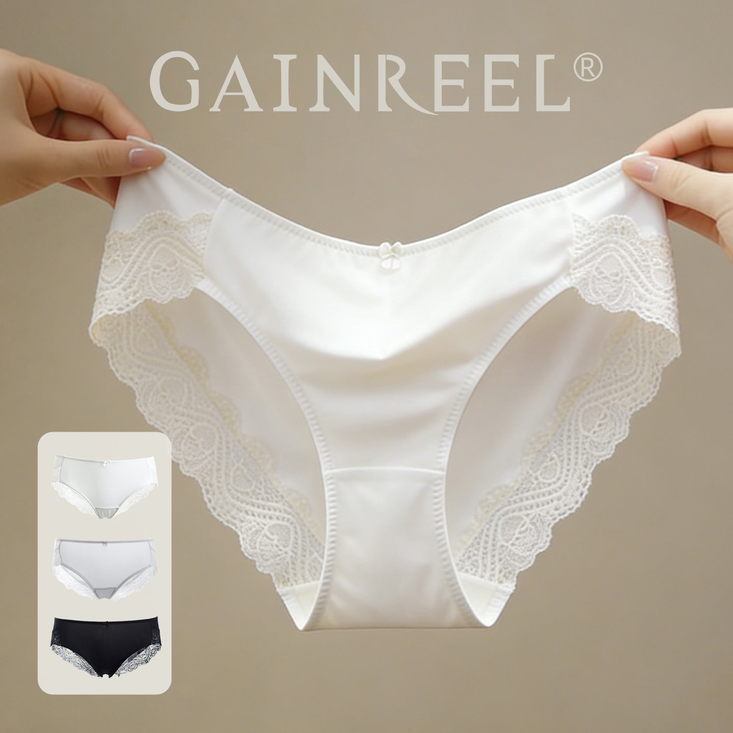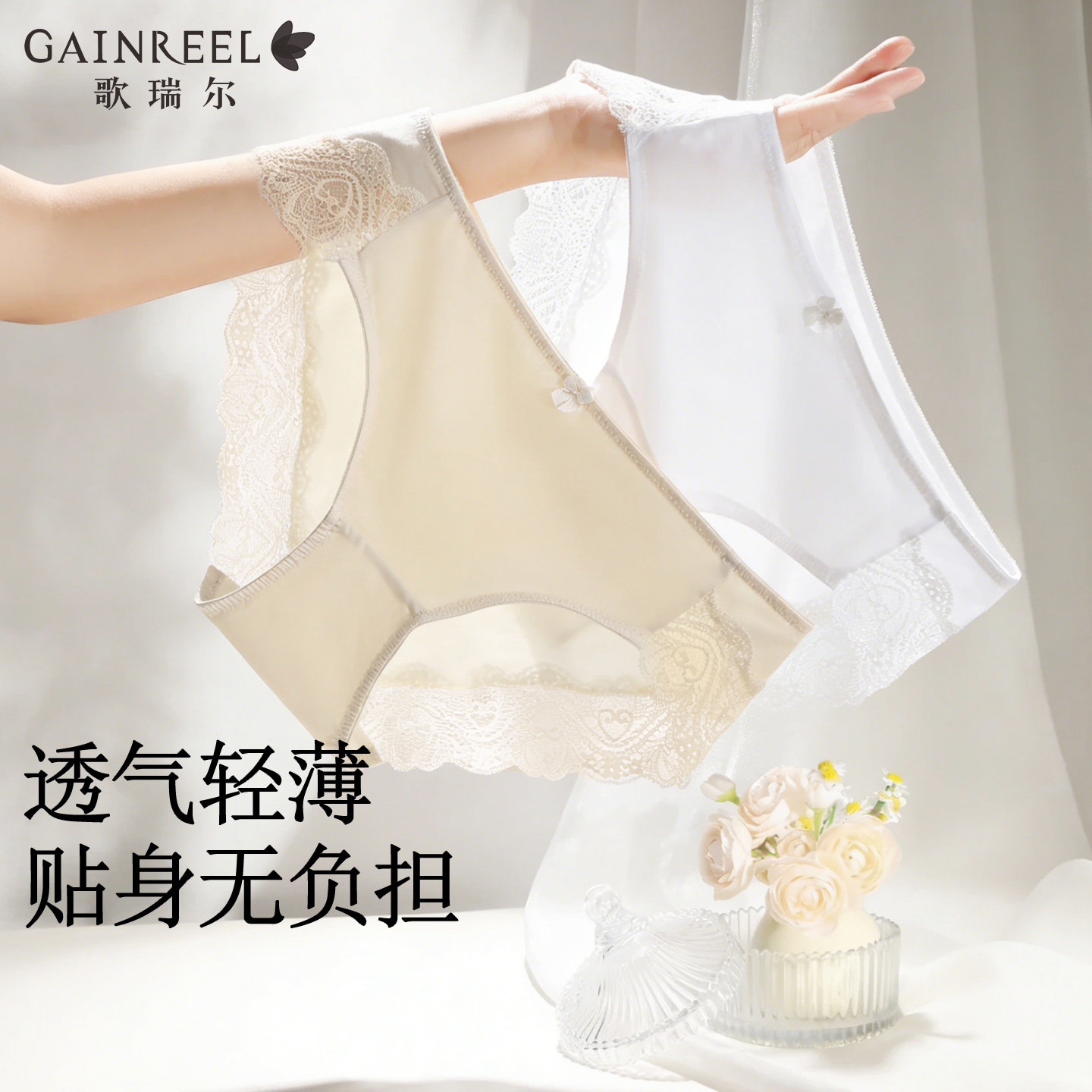 歌瑞尔高级感透气蕾丝内裤女纯棉裆3条装亲肤裸感丝滑中腰三角裤