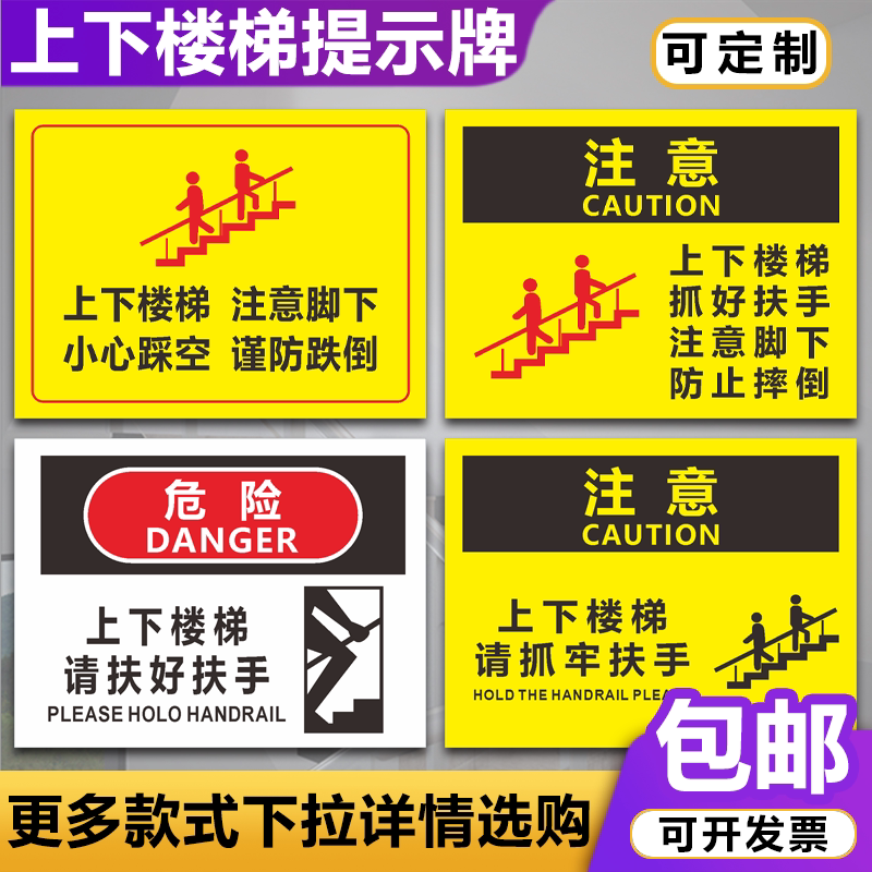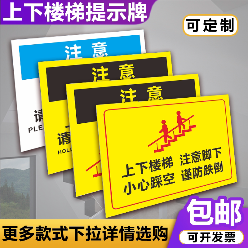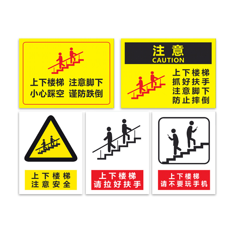 上下楼梯扶手脚下安全提示牌注意温馨提醒小心踩空滑倒标识警示牌