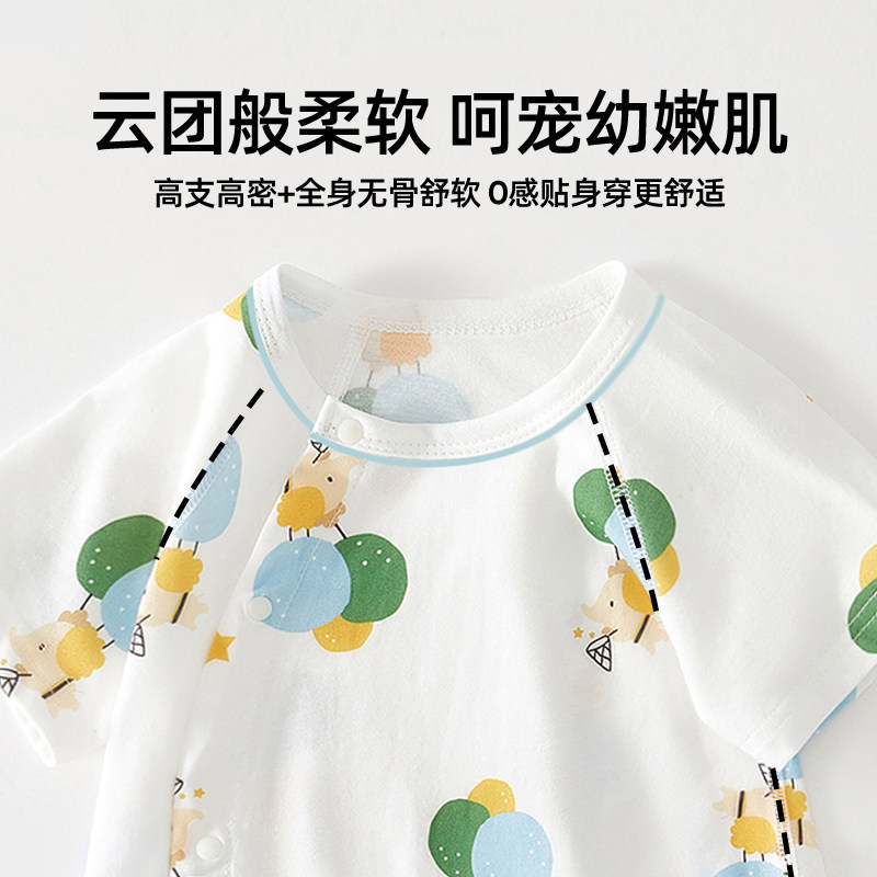 婧麒新生婴儿衣服夏季薄款连体衣纯棉短袖小月龄男宝宝a类空调服