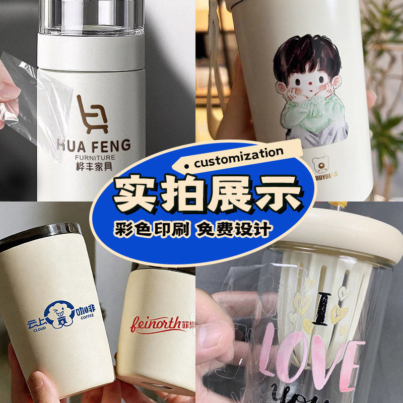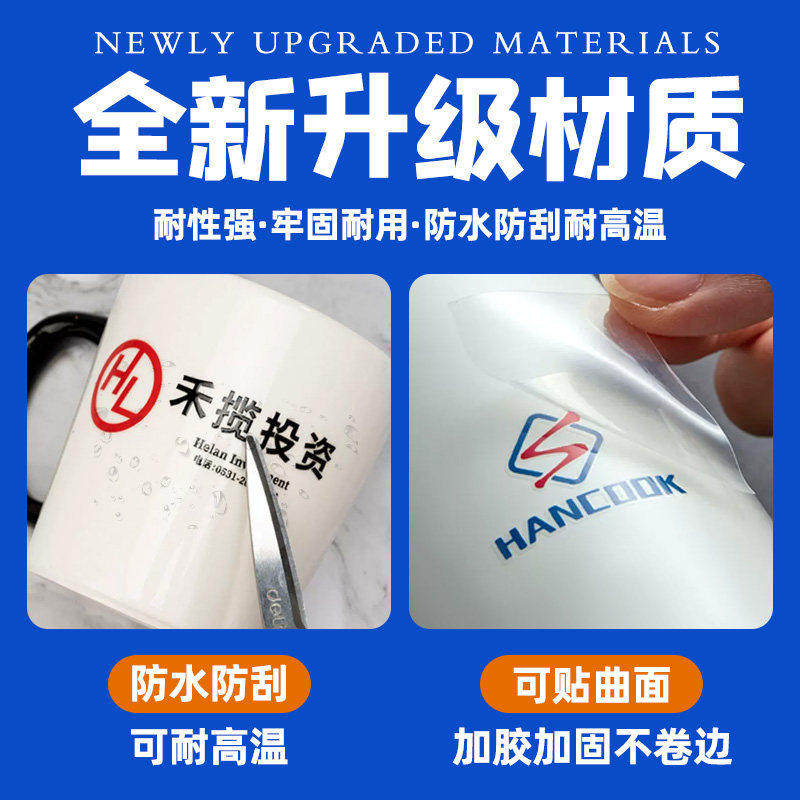 保温杯转印贴纸定制玻璃杯子立体logo标签防水防热透明uv水晶标贴