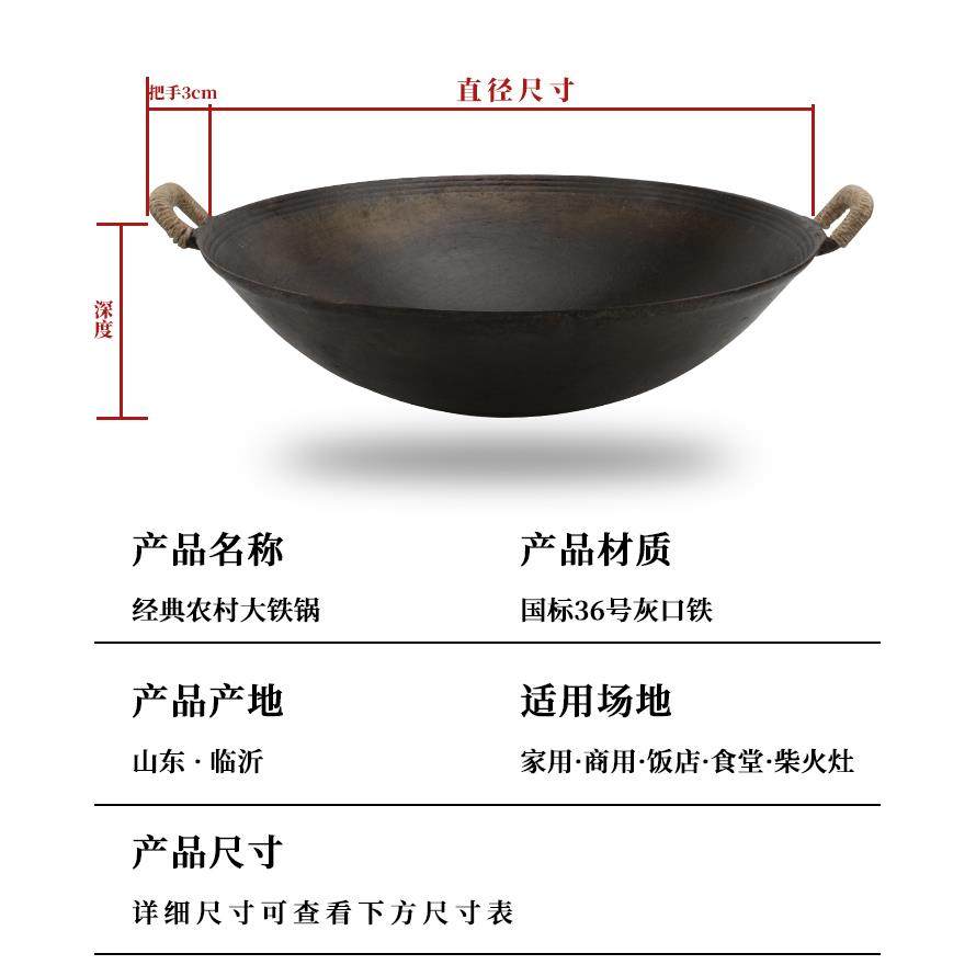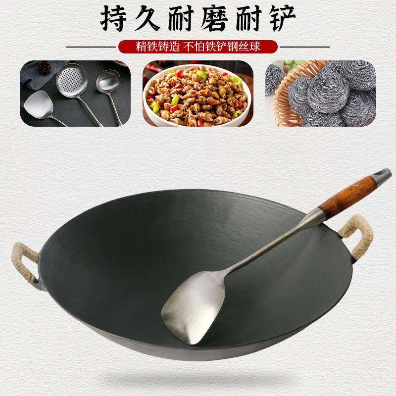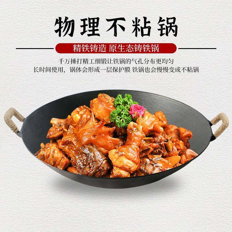 老式陆川生铁炒锅家用双耳传统锅农村柴火灶铁锅铸铁小炒菜锅火锅