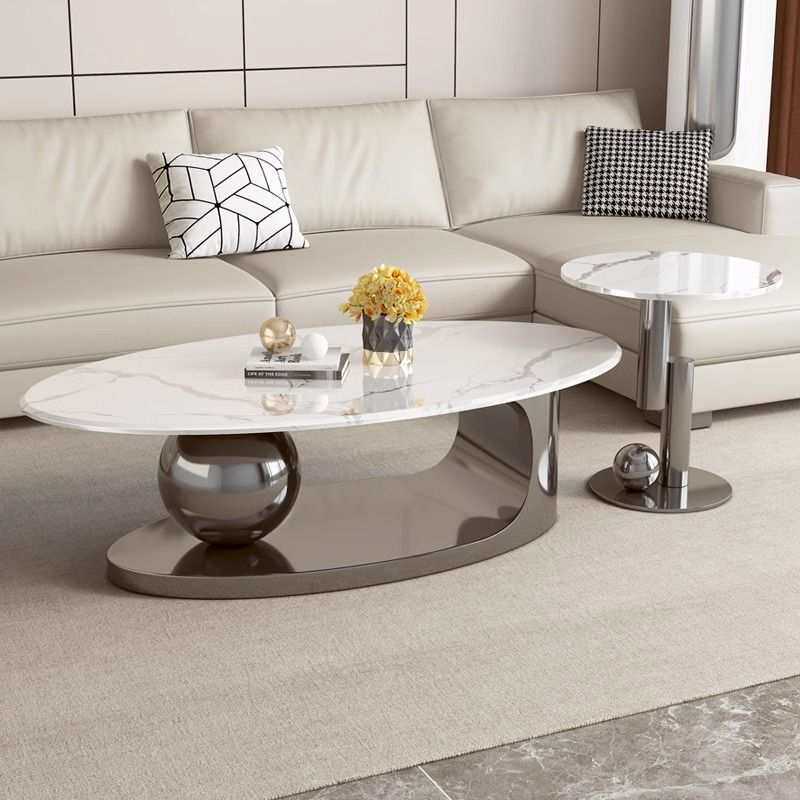 意式轻奢微晶石大理石椭圆形简约现代家具组合客厅家用小户型茶几
