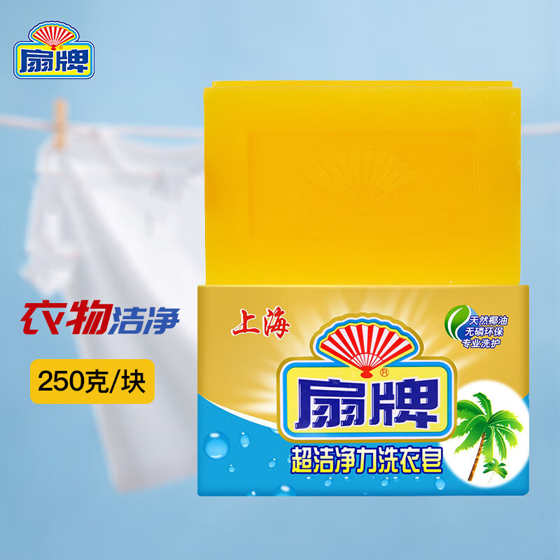 扇牌超洁净力洗衣皂250g无磷易漂专业手洗肥皂超强国货椰油老牌