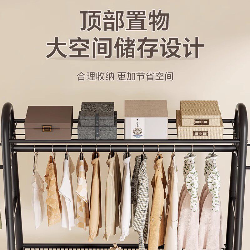 衣帽架落地卧室挂衣架晾衣架挂衣服架子结实客厅双层衣帽间金属
