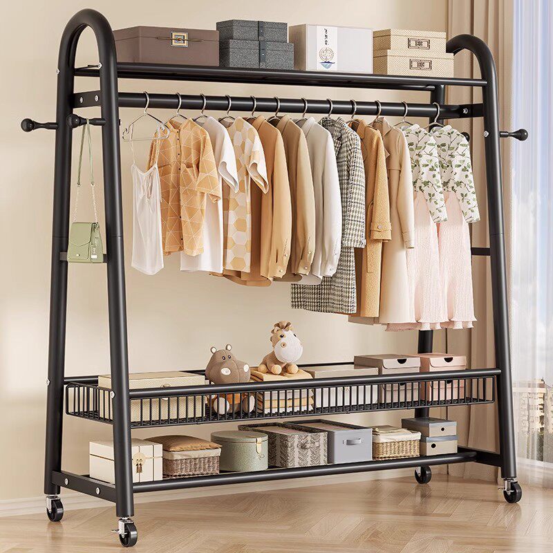 衣架落地卧室奶油风挂衣架家用铁艺简易晾衣架室内客厅移动衣帽架