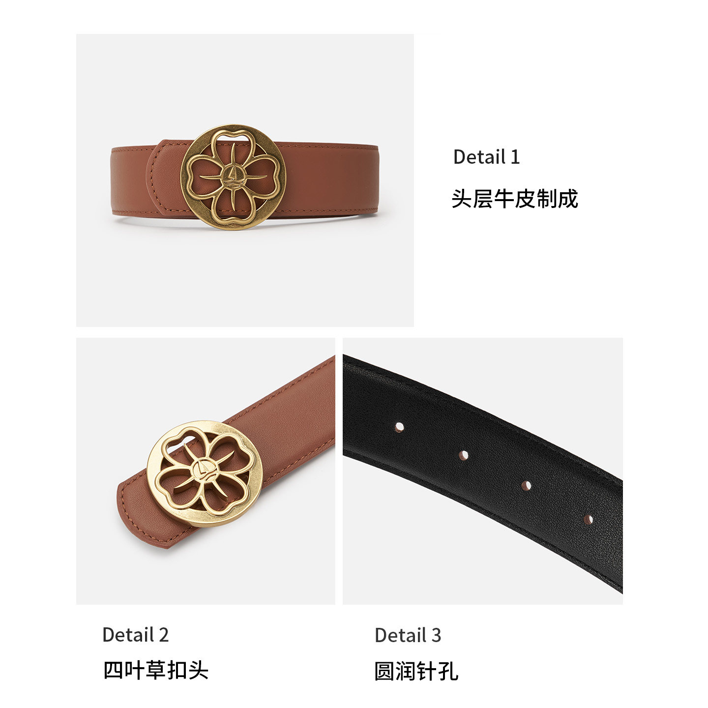 Navigare意大利小帆船镂空花朵扣女士腰带简约四叶草针扣百搭腰带