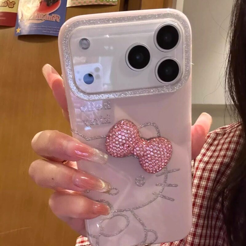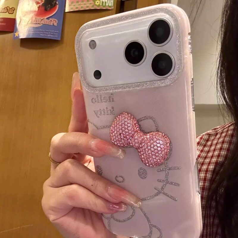 闪粉猫咪适用苹果17promax手机壳新款高级感立体领结卡通外壳iphone16Pro粉色可爱女款15P全包防摔14保护套13