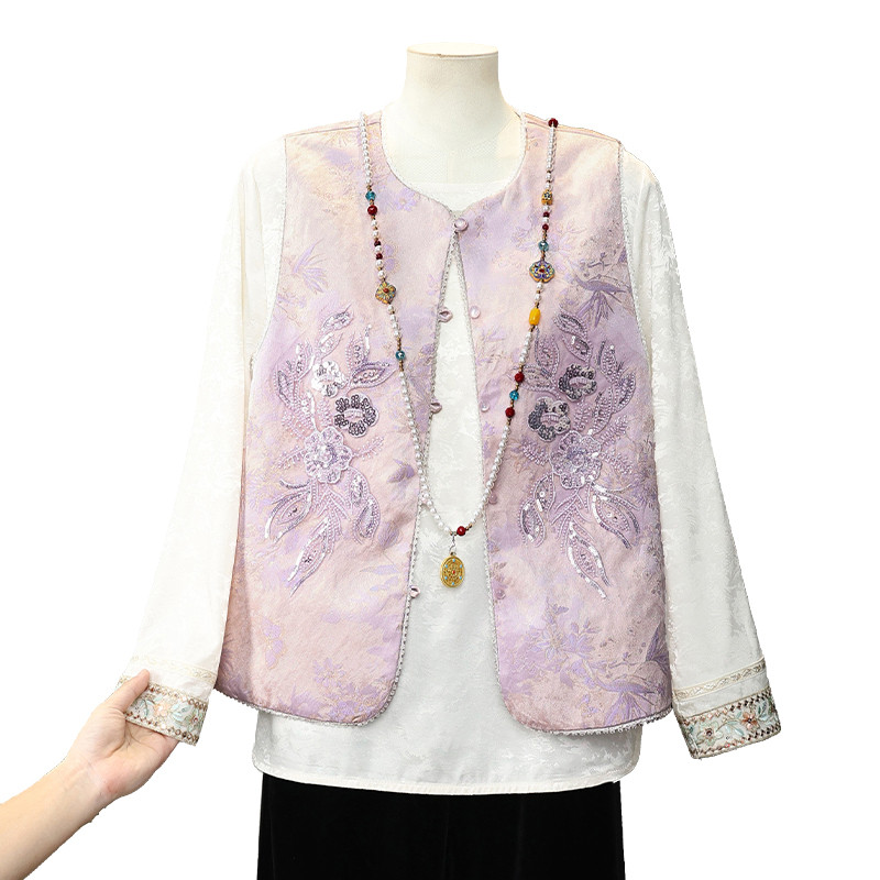 【雅鹿正品】新中式中年妈妈春装马甲女春秋背心外套新款国风马夹