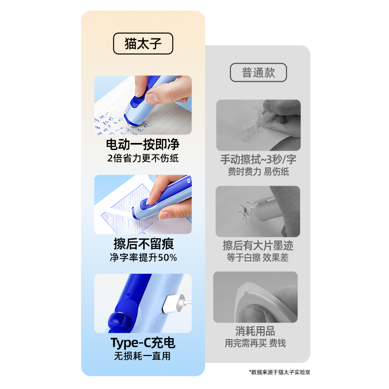 猫太子橡皮擦电可热小学生专用热可擦神器超干净热敏专用黑科技儿童高颜值不留痕可擦笔自动电动中性笔钢笔