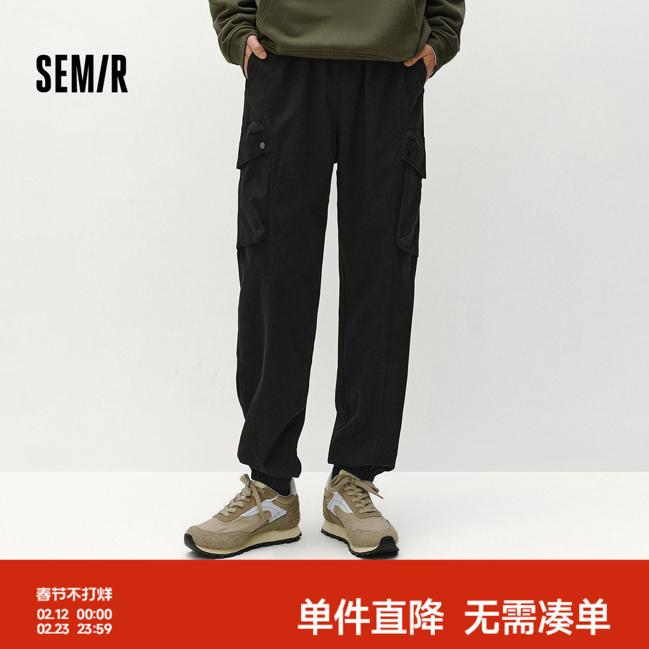 宽松束脚休闲裤 磨毛大口袋工装裤