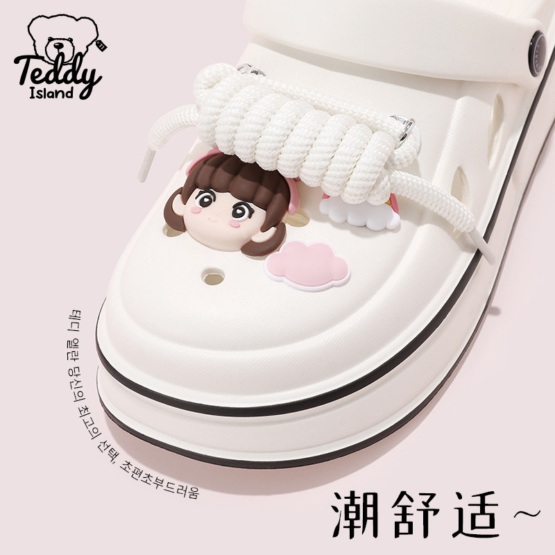 泰迪爱兰洞洞鞋女夏天2025新款可爱卡通EVA软底运动风外穿凉拖鞋