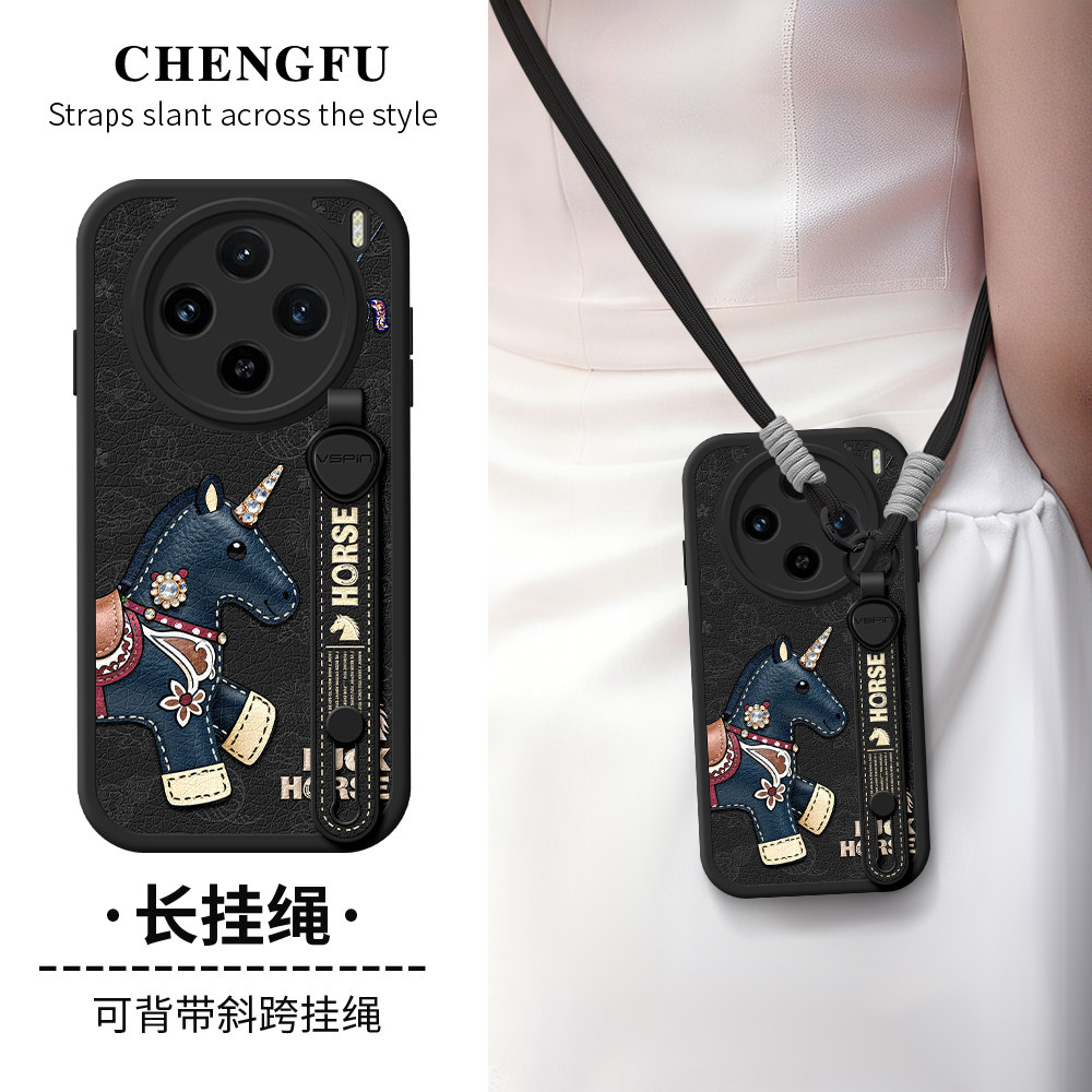 琛赋适用vivo x300手机壳x200新款x90s皮纹小马x100ultra斜挎X80背带X70腕带x60Pro挂绳x50女30保护套Promini