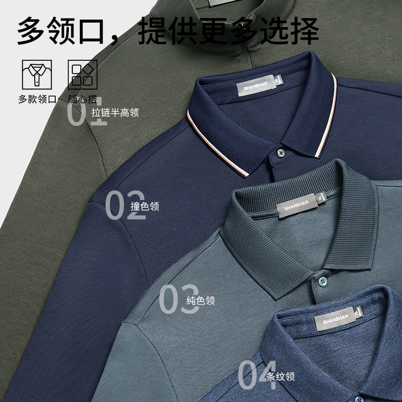 杉杉男士翻领长袖t恤男款2025春季新款商务休闲polo衫上衣高级感