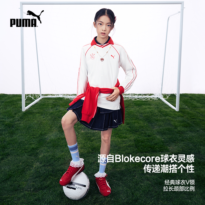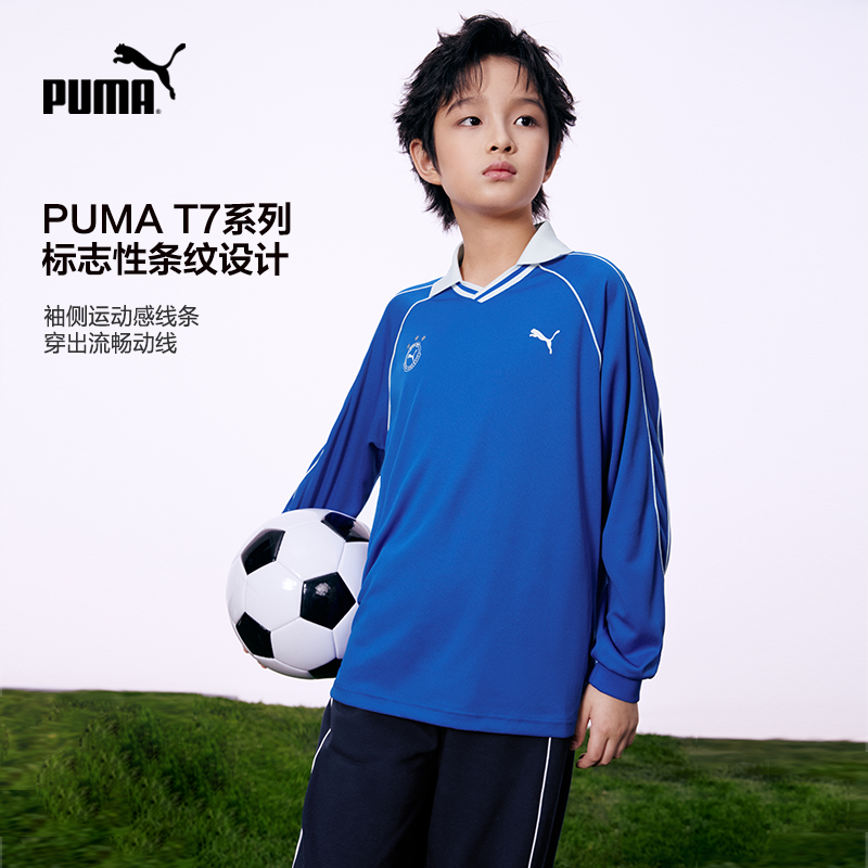 PUMA彪马童装2026春季新款儿童长袖T恤休闲翻领外套t7足球风上衣