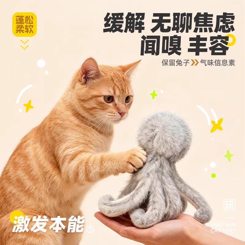 金格羽兔毛章鱼猫咪丰容玩具自嗨解闷捕猎替换头消耗体力逗猫棒