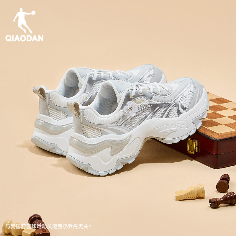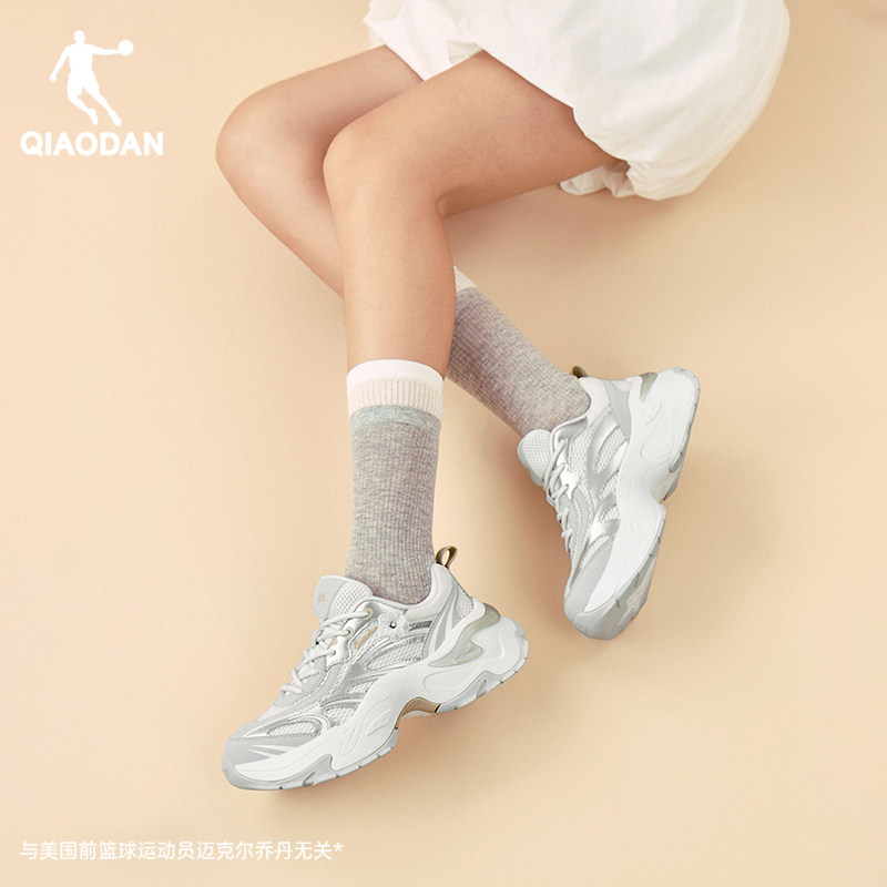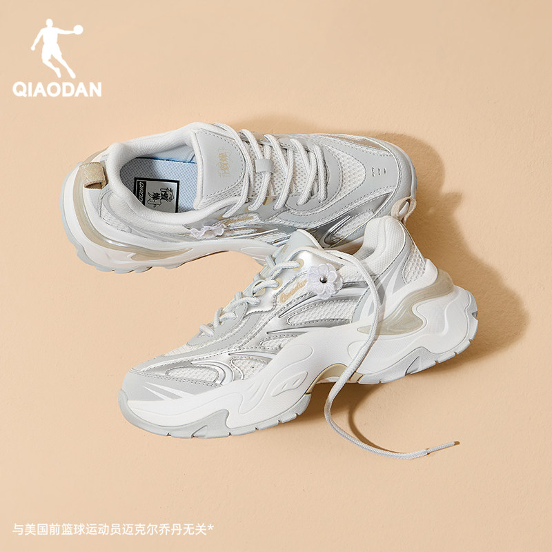 乔丹蝴蝶鞋复古银色休闲鞋女运动鞋2026春季新款厚底增高老爹鞋子
