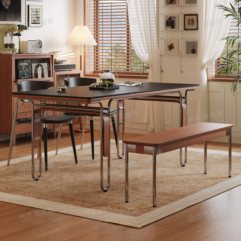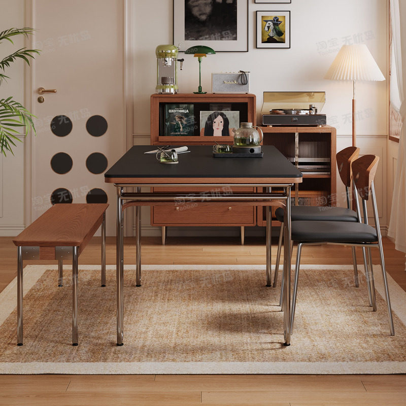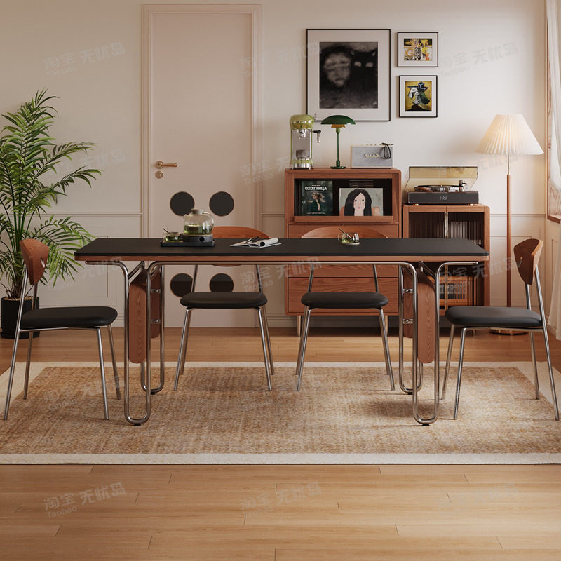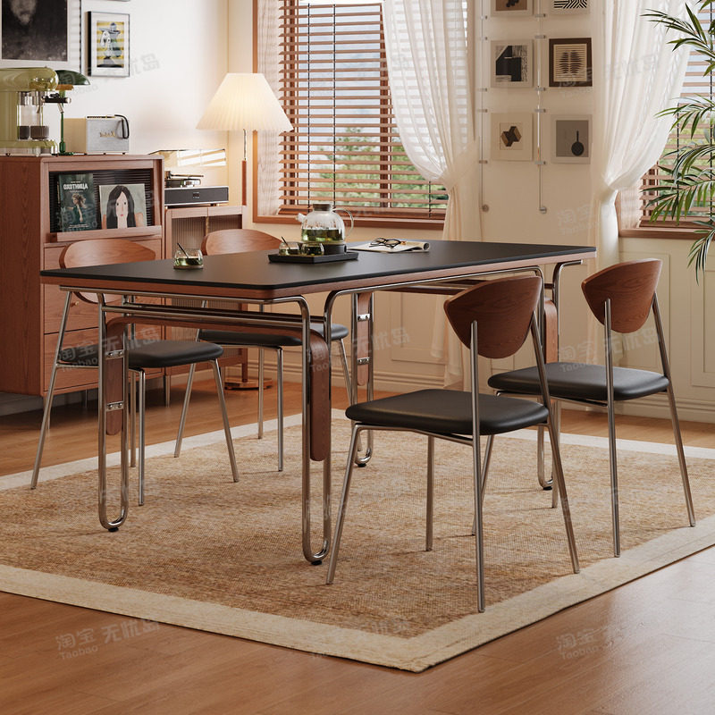 法式复古岩板实木餐桌网红家用小户型包豪斯高端长方形中古风饭桌