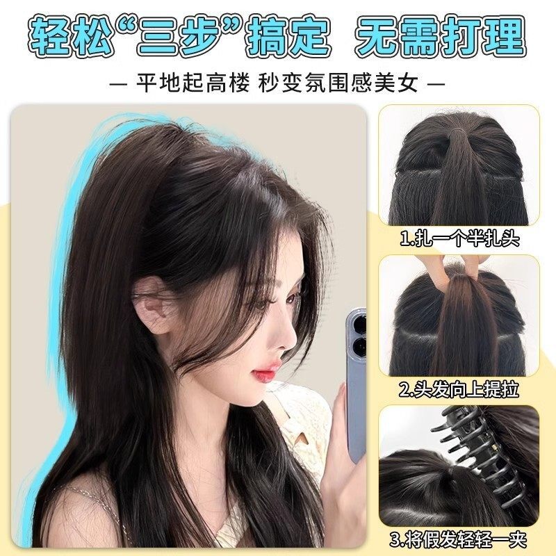 马尾假发女仿真发自然抓夹瀑布半扎高马尾辣妹女团同款假发辫马尾