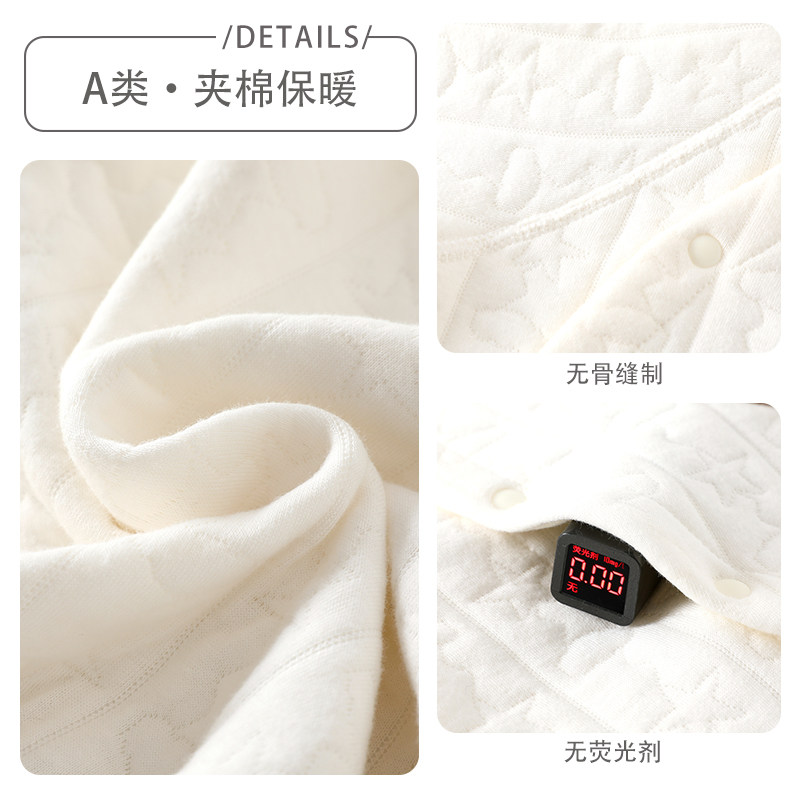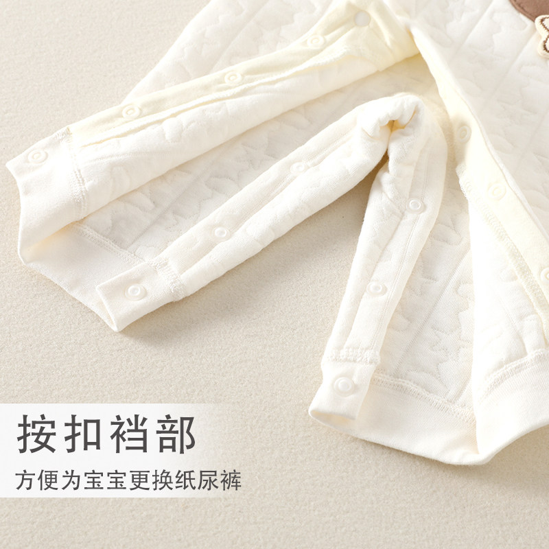 婧麒新生儿婴儿衣服秋冬夹棉满月纯棉初生宝宝秋装连体衣a类爬服