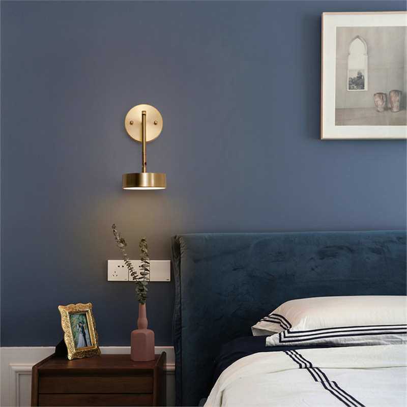 全铜北欧床头客厅过道灯背景墙书房卧室简约创意个性LED旋转壁灯