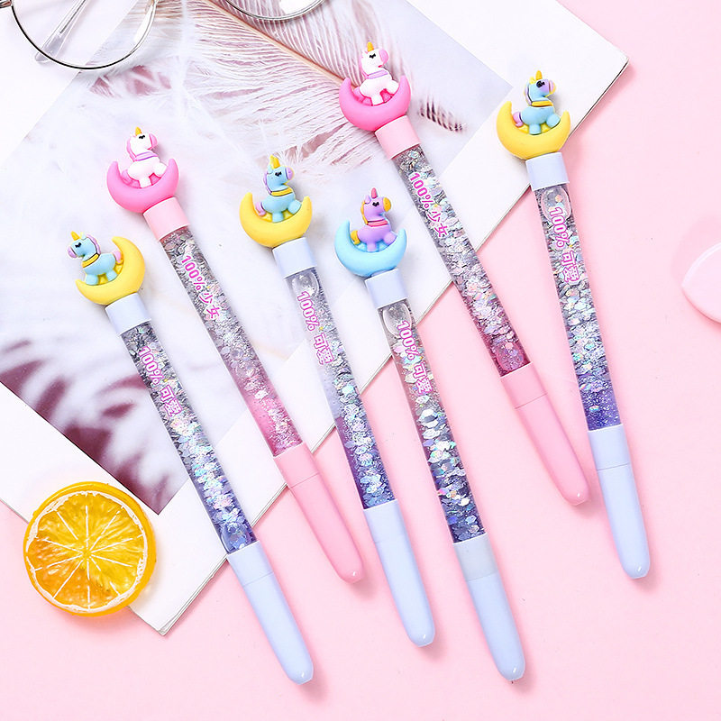 学生写字笔流沙中性笔可爱创意少女网红水笔学生开学文具用品黑色