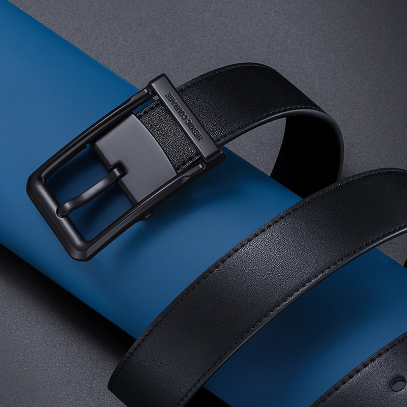 HLA/海澜之家针扣皮带男士腰带新款年轻人时尚简约休闲真牛皮裤带