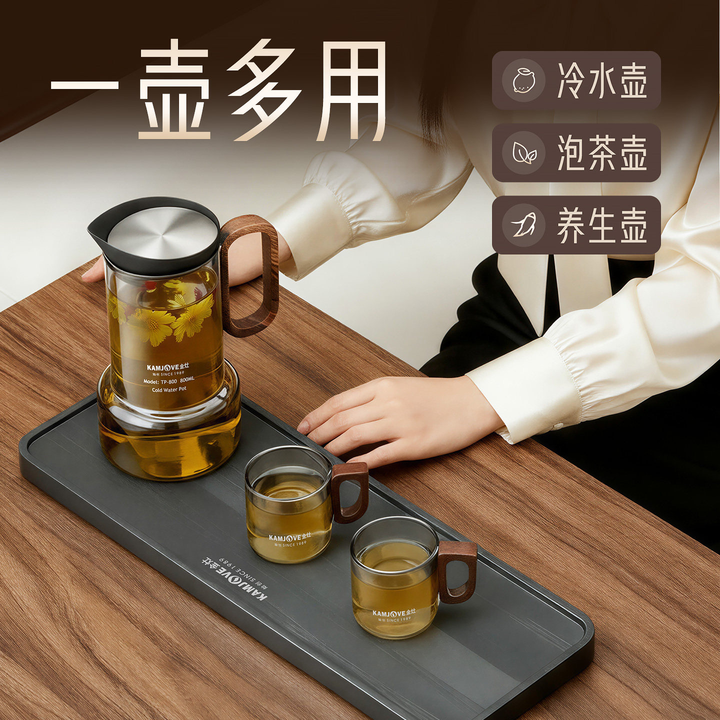 金灶TP-800冷水壶家用大容量高硼硅玻璃茶壶多功能果汁壶凉水壶