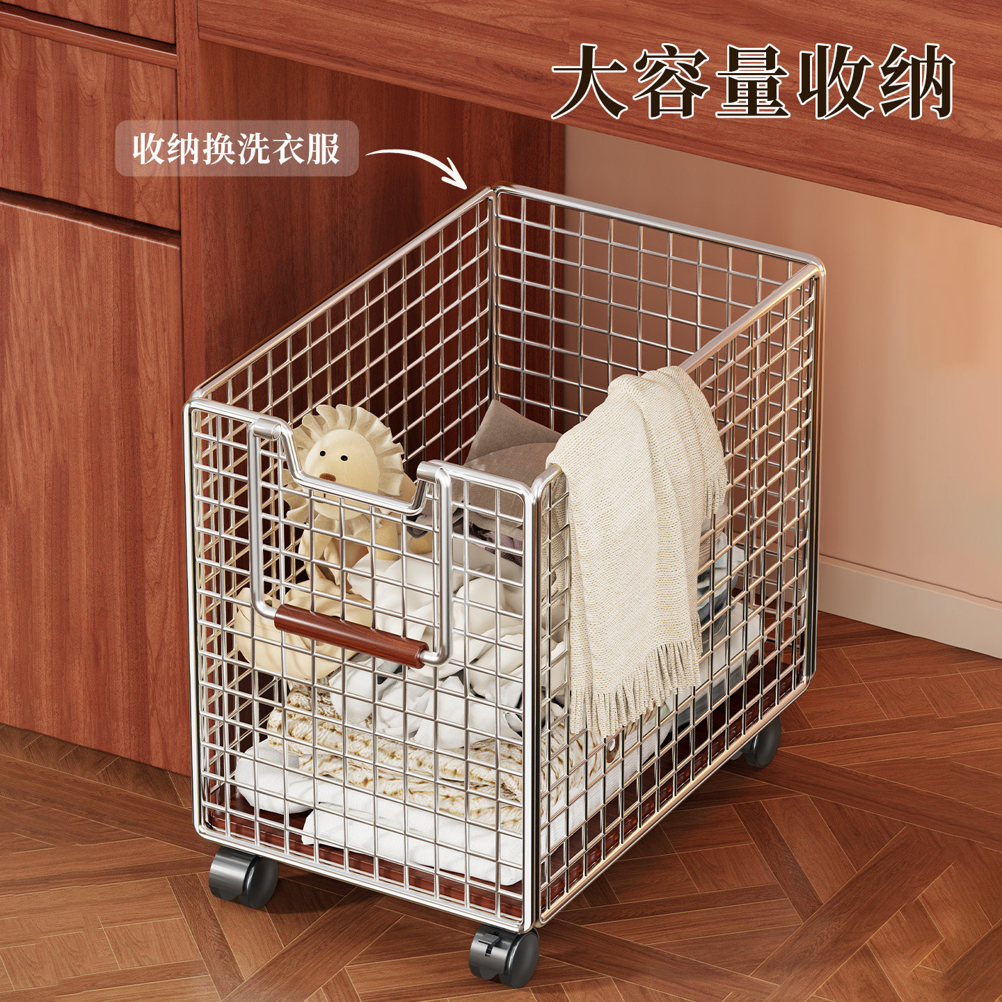 脏衣服可移动收纳筐带轮子家用洗衣篮娃娃收纳桶卫生间放衣物神器