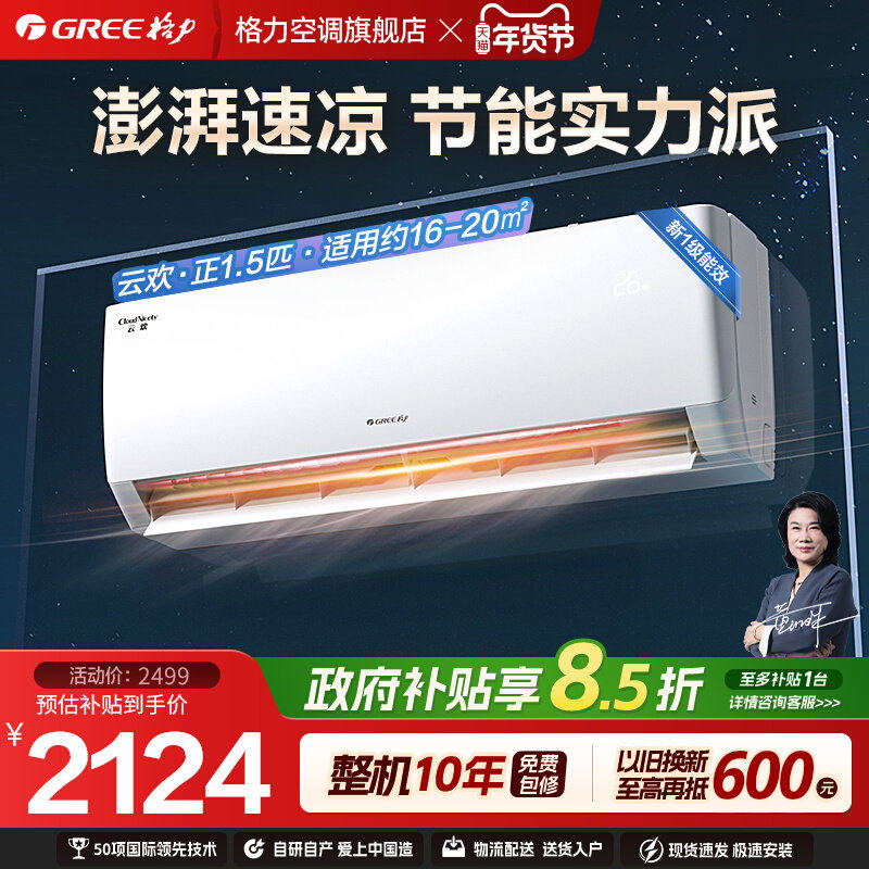 【格力空调】大1匹正1.5匹新一级能效省电挂机云欢变频官方正品