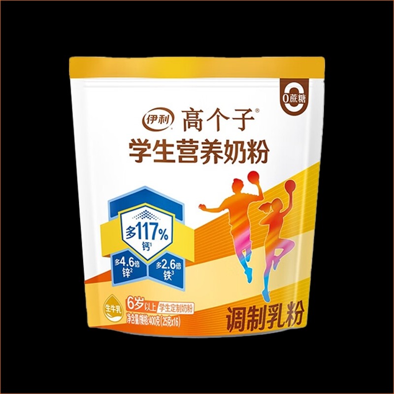 伊利高个子学生营养奶粉400g袋装高锌高钙青少年儿童成长牛奶助力