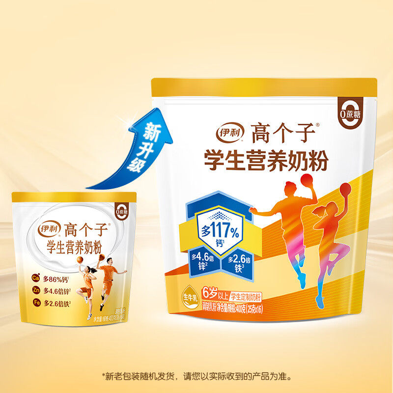 伊利旗舰店高个子学生营养奶粉高钙锌儿童青少年助力成长奶粉400g