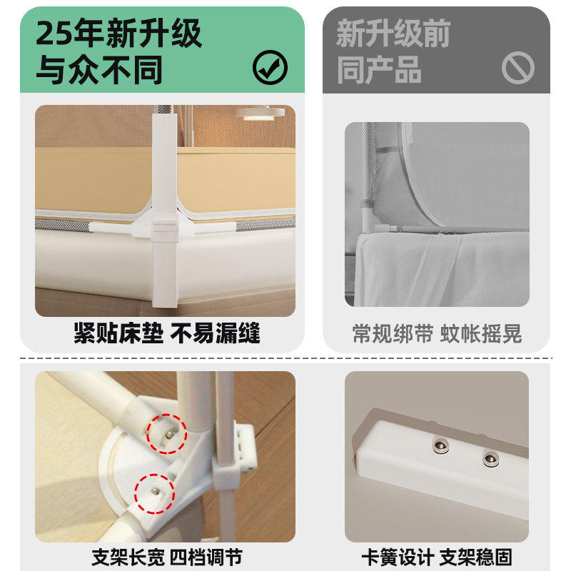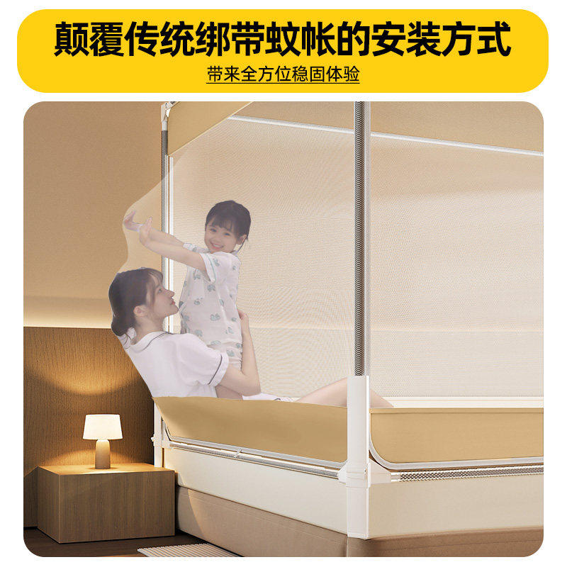 坐床式家用儿童防摔蚊帐全罩式拉链蒙古包加密防蚊婴儿防掉床2026