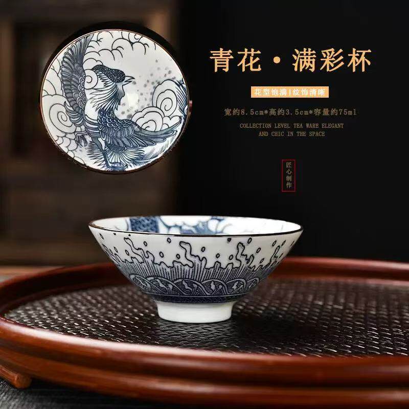 青花瓷茶杯斗笠杯陶瓷茶盏品茗杯功夫茶具茶碗茶杯功夫茶杯会客杯