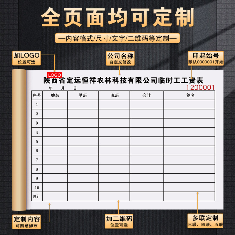 【临时工专用工资表】钟点工计件计工结算账本零工薪资发放明细表