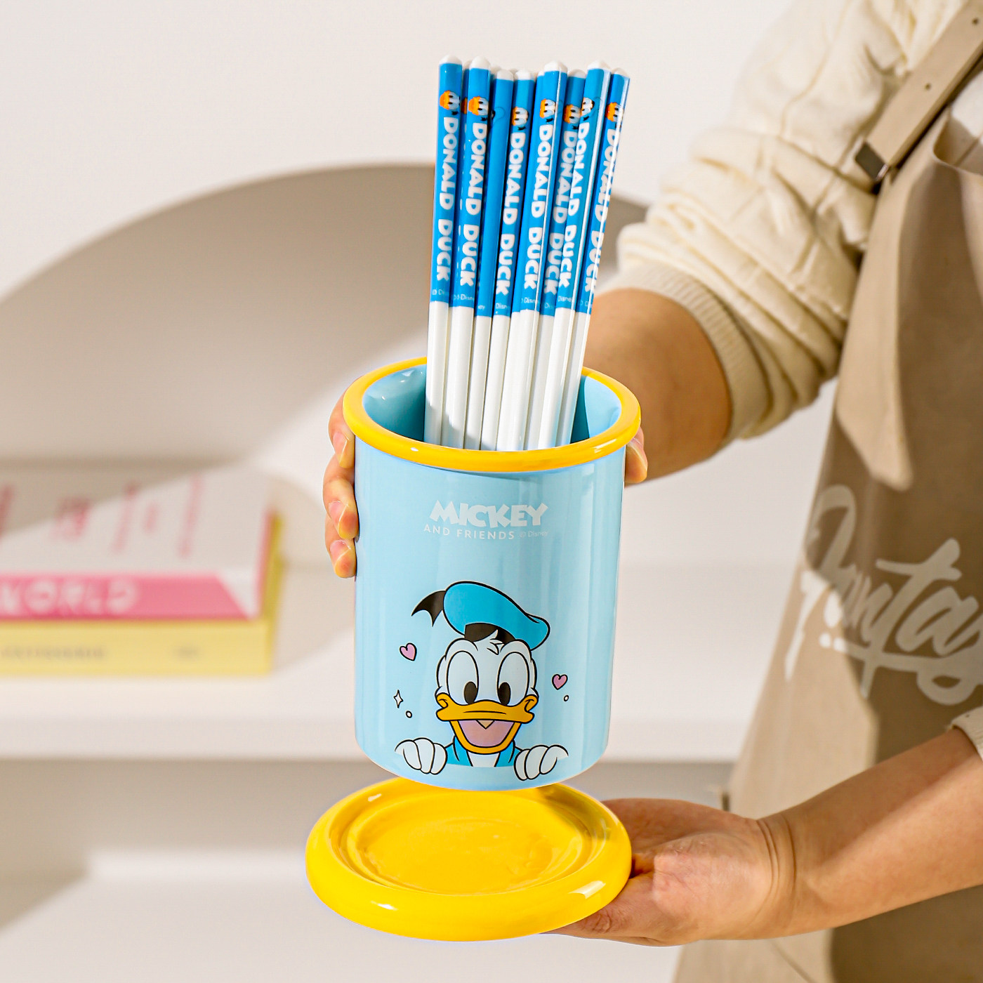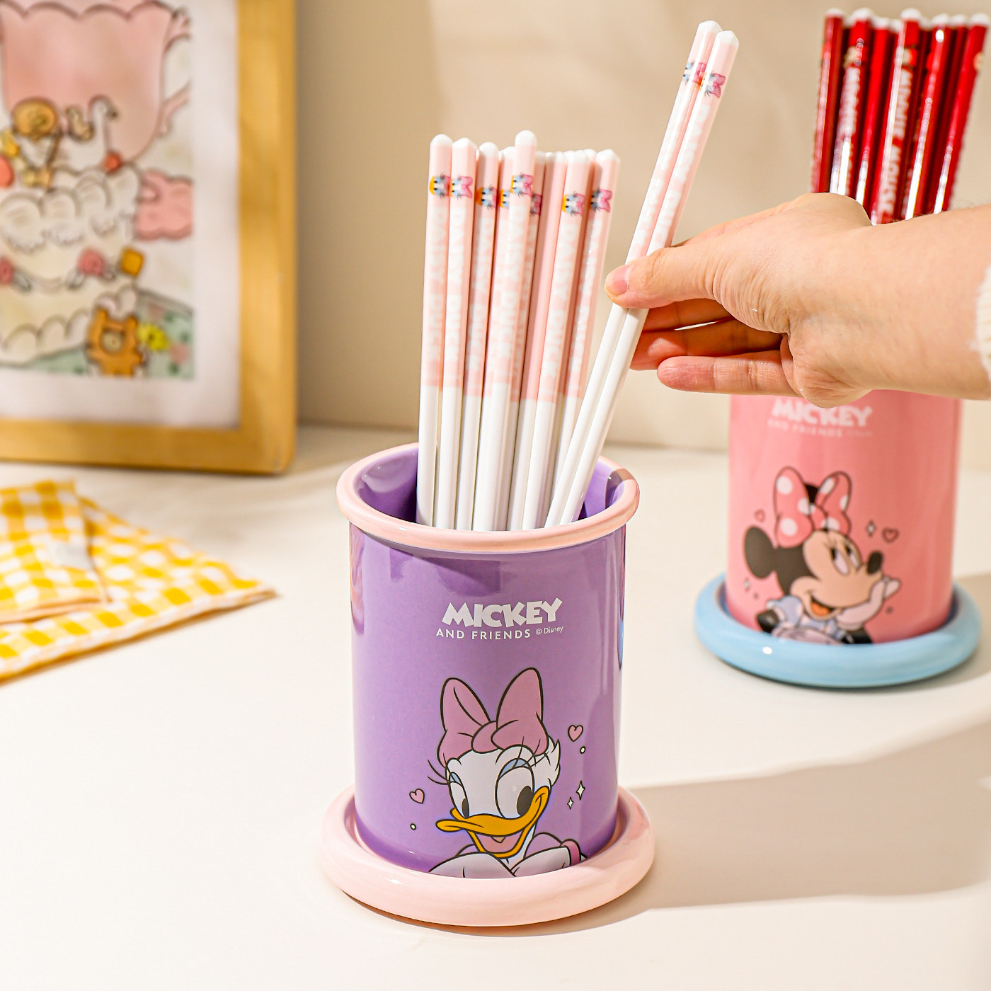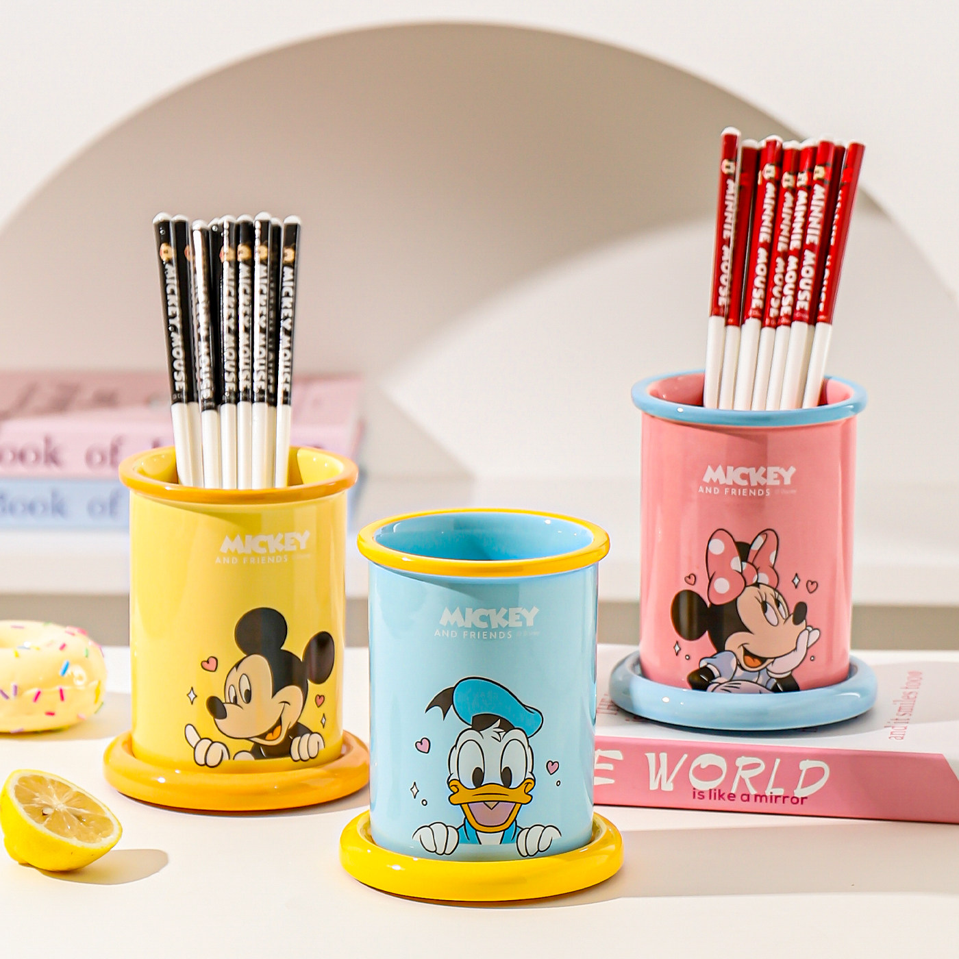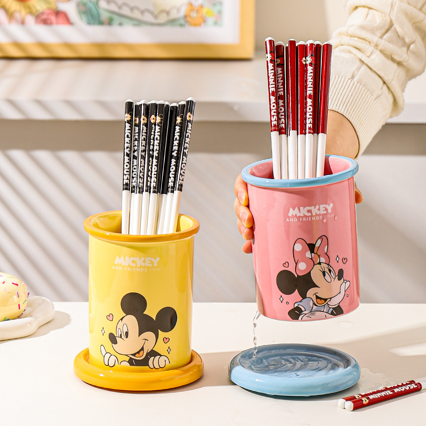 川岛屋迪士尼陶瓷筷子筒沥水防霉筷子收纳盒台面筷笼子家用筷子篓