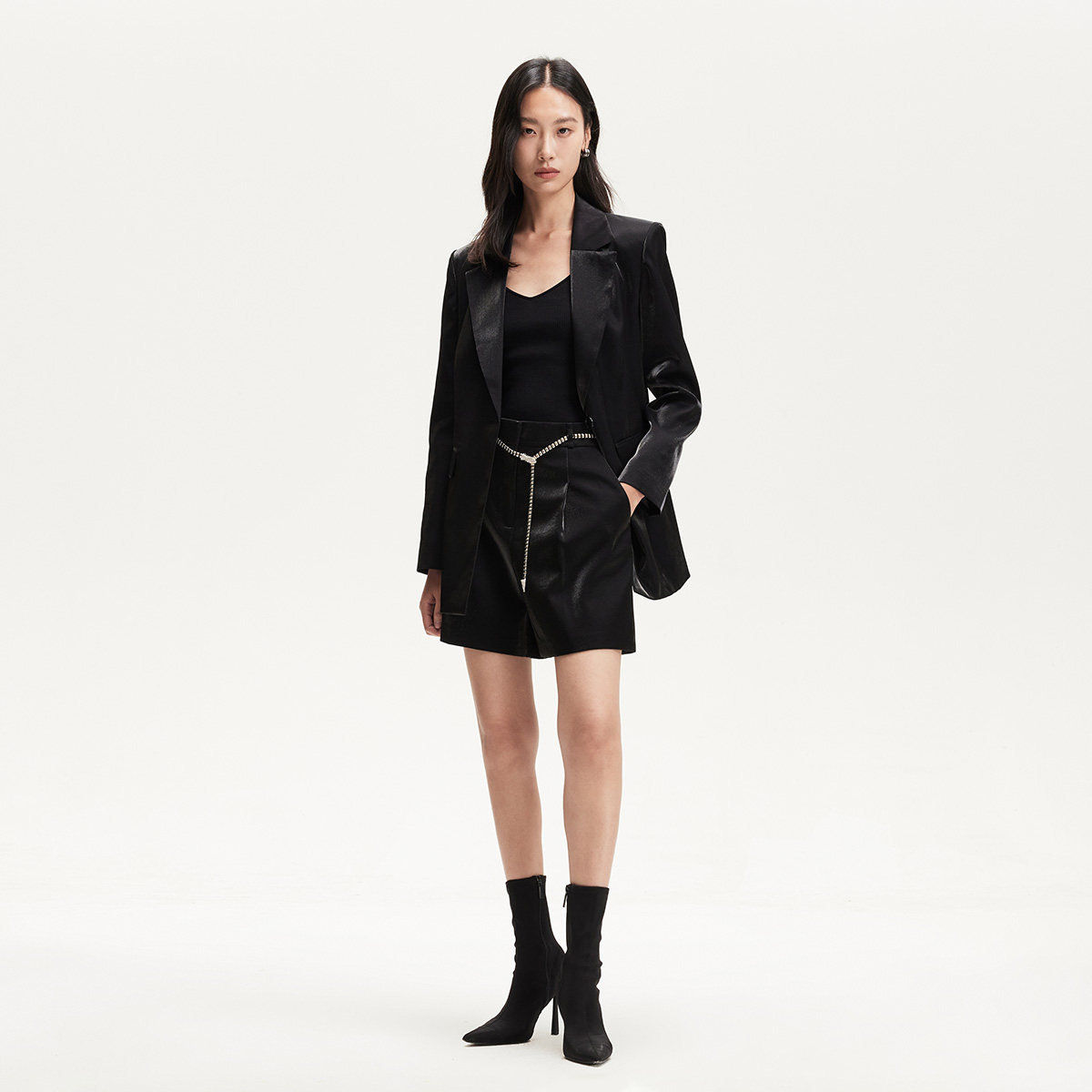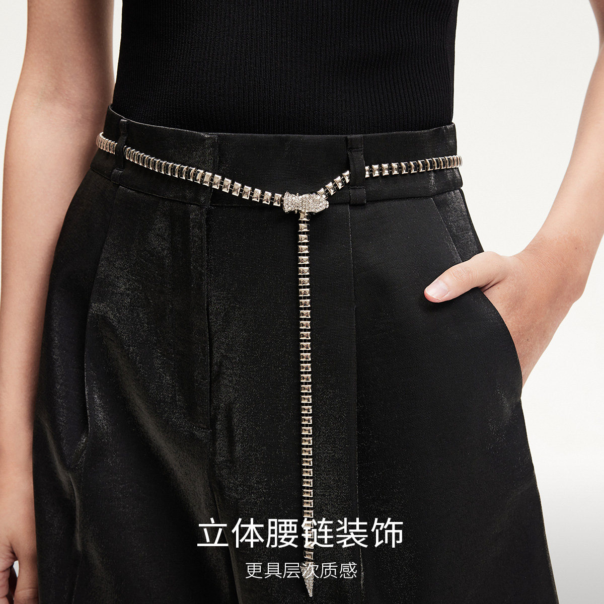 Vero Moda短裤2025春季新款光泽感面料带腰链短裤通勤325115003
