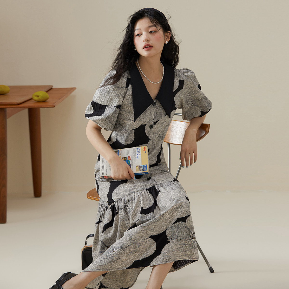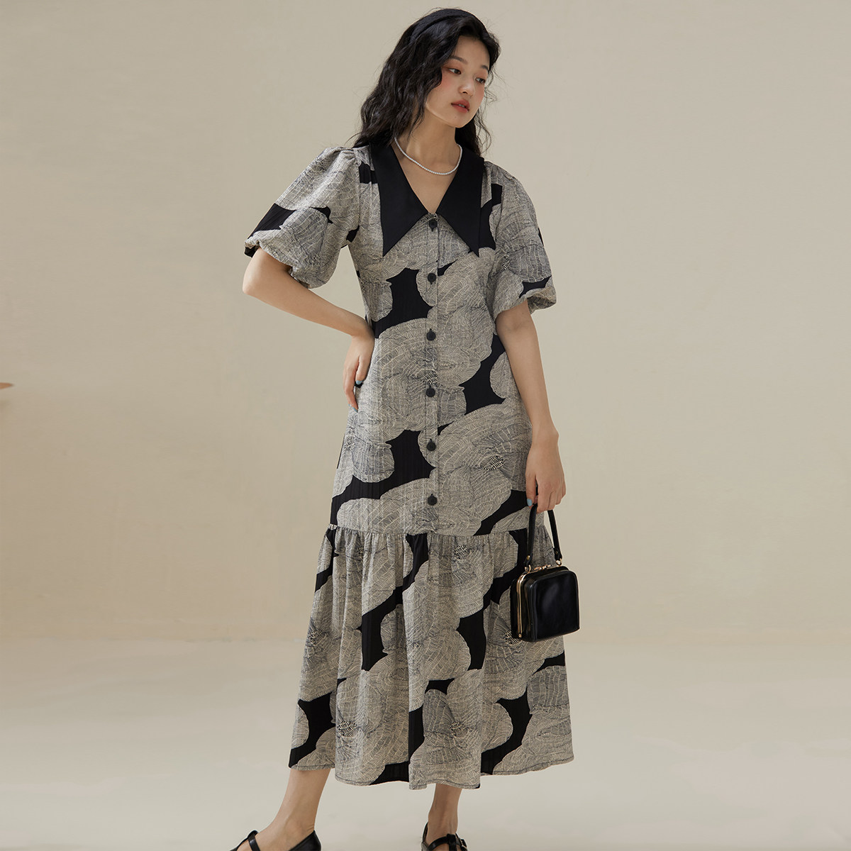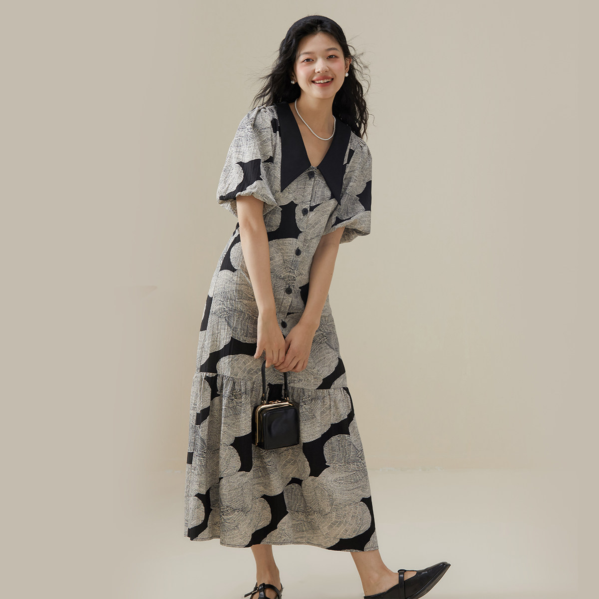 one more法式泡泡袖雪纺连衣裙女2026新款短袖高级感polo领a字裙