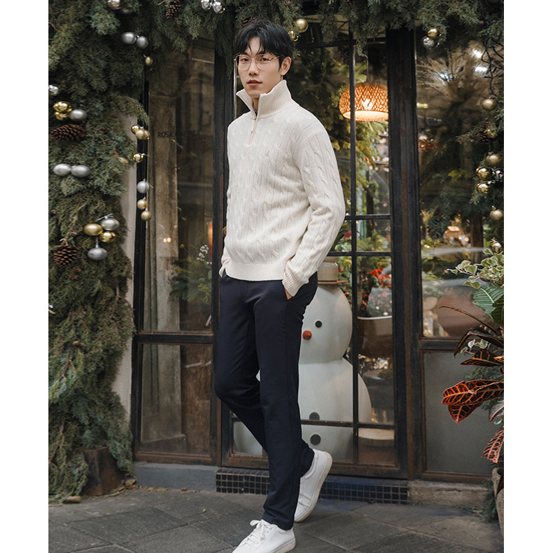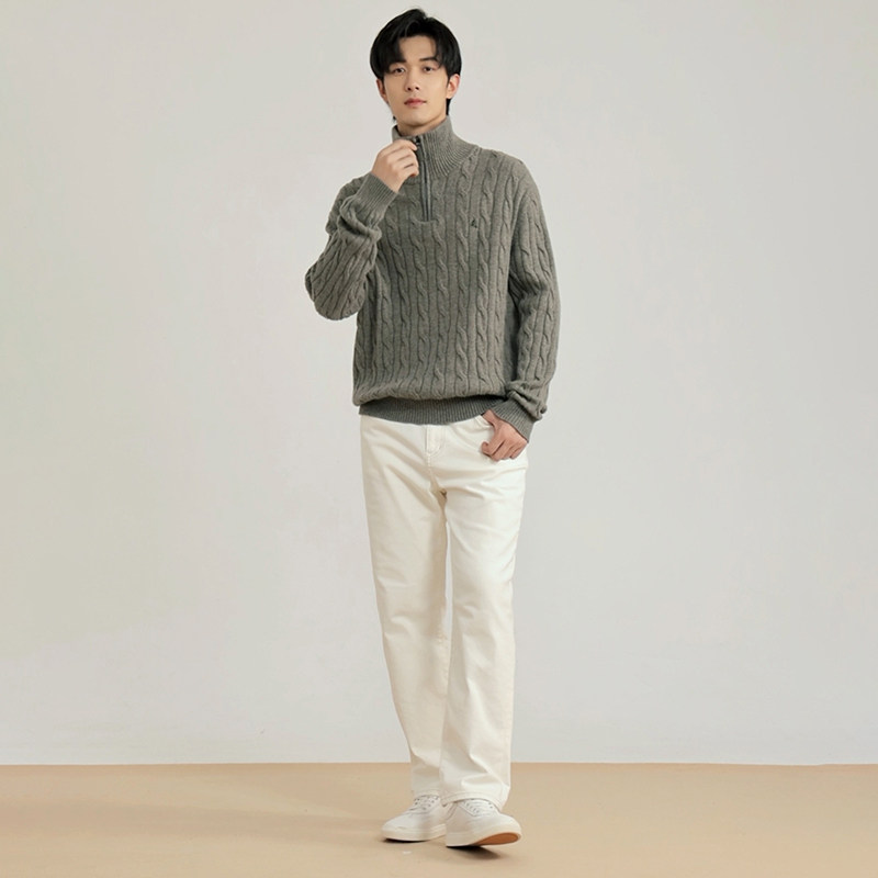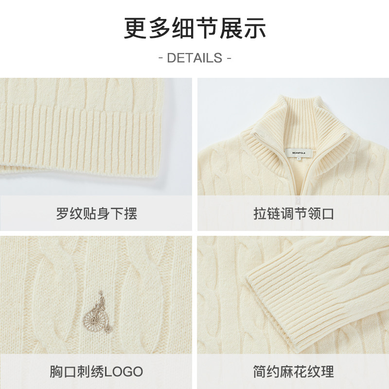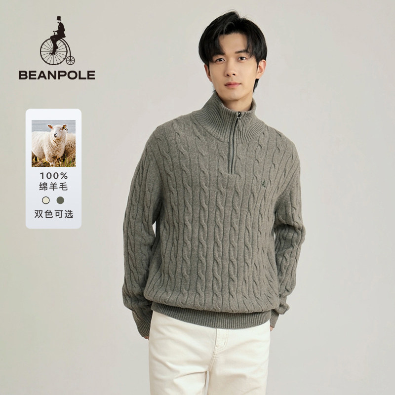 100%绵羊毛BEANPOLE滨波男通勤时尚休闲优雅简约绞花半拉链针织衫