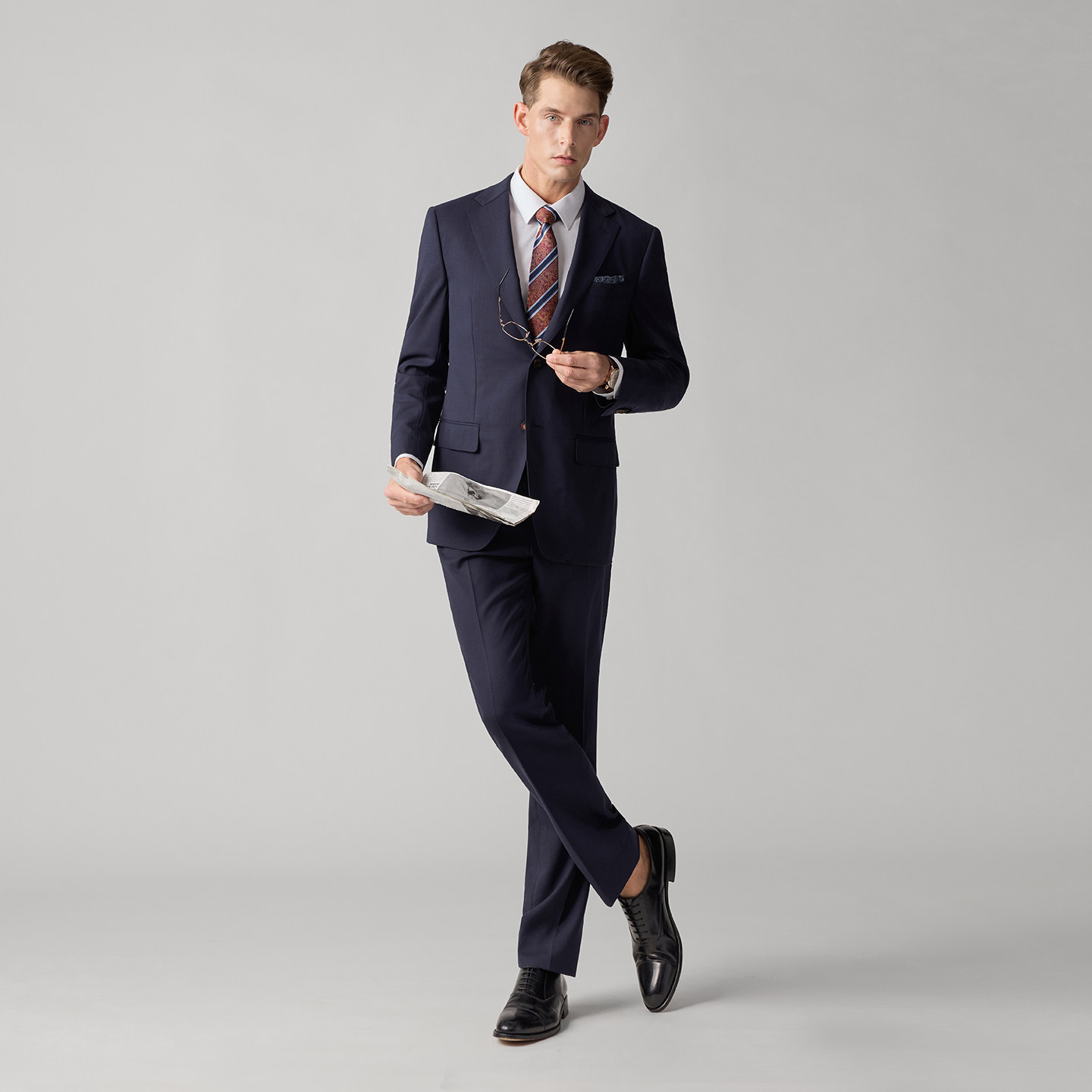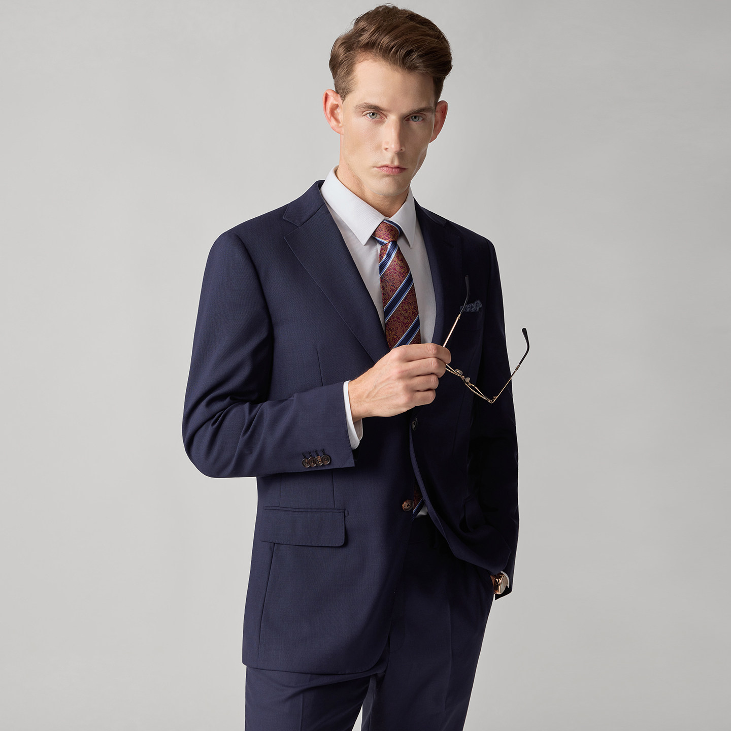 柏品强捻羊毛可机洗套西男2026春新抗皱商务休闲通勤正装西服套装