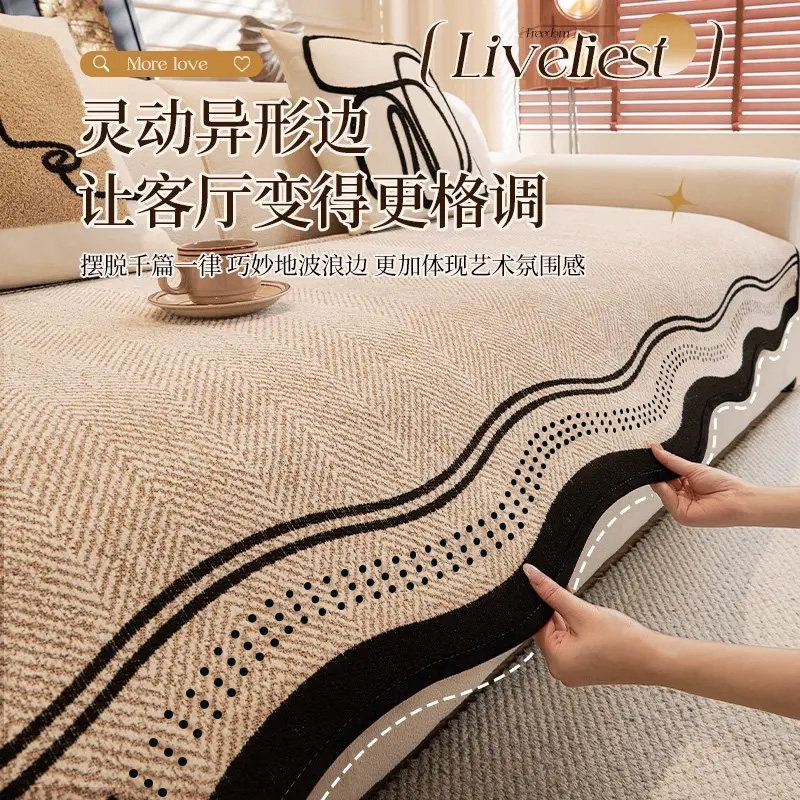 2025新款鱼骨纹雪尼尔沙发巾沙发盖布四季通用全包坐垫套罩盖毯子