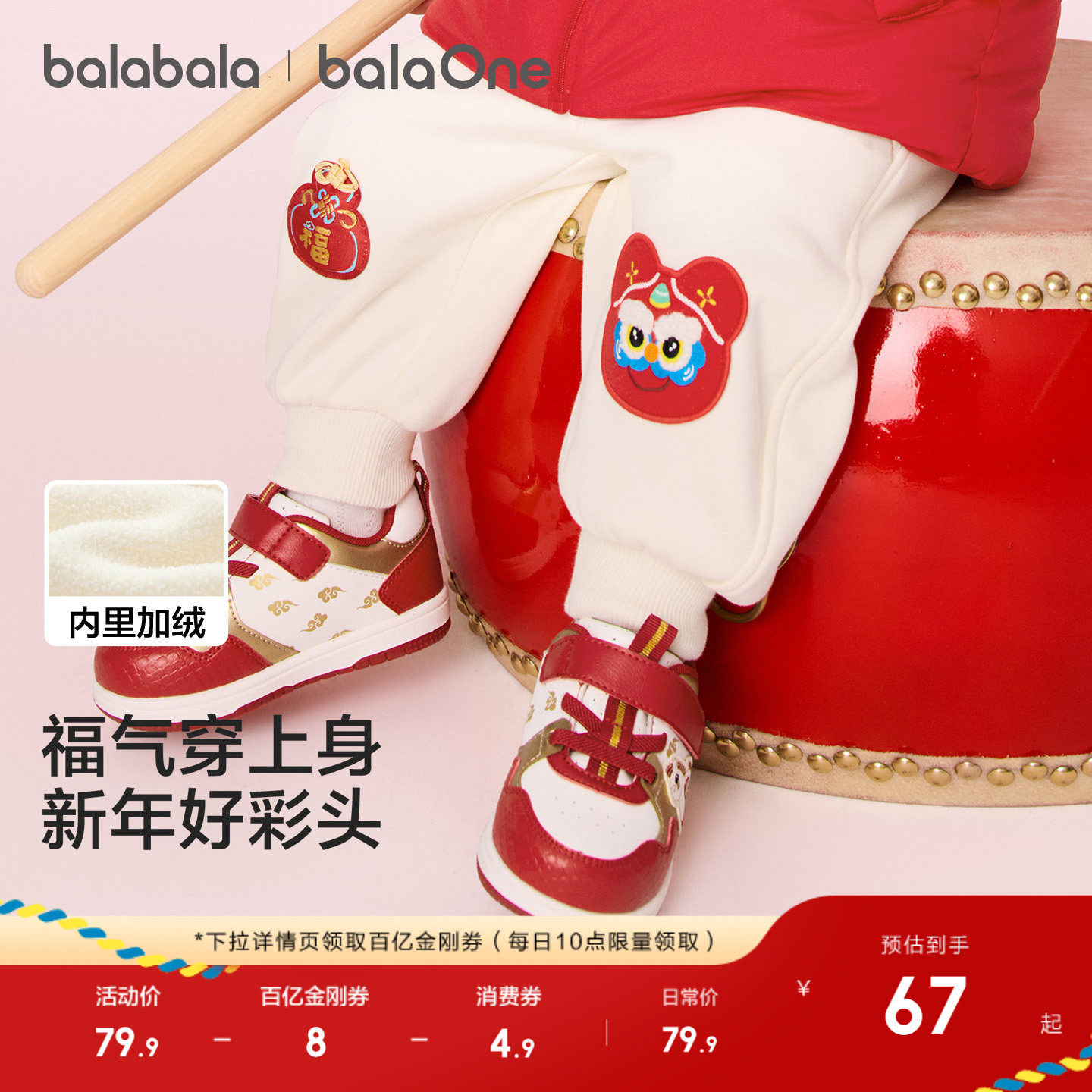 巴拉巴拉童装儿童加绒长裤子男童2026冬装新款红色拜年服女童宝宝