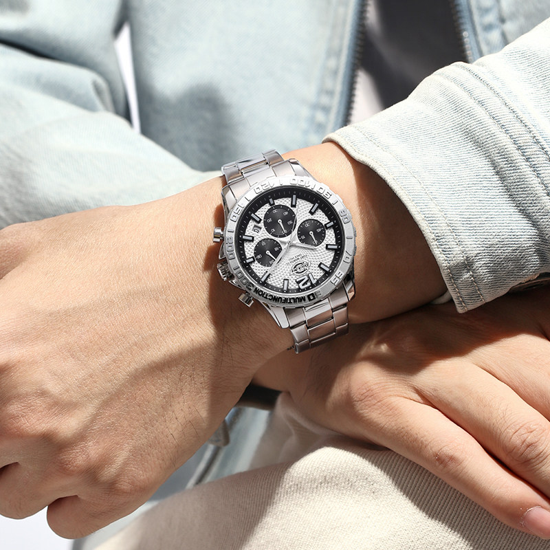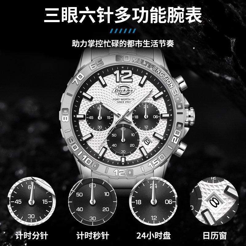 Dickies手表男款男士石英腕表时尚潮流三眼多功能机械风男生钢带