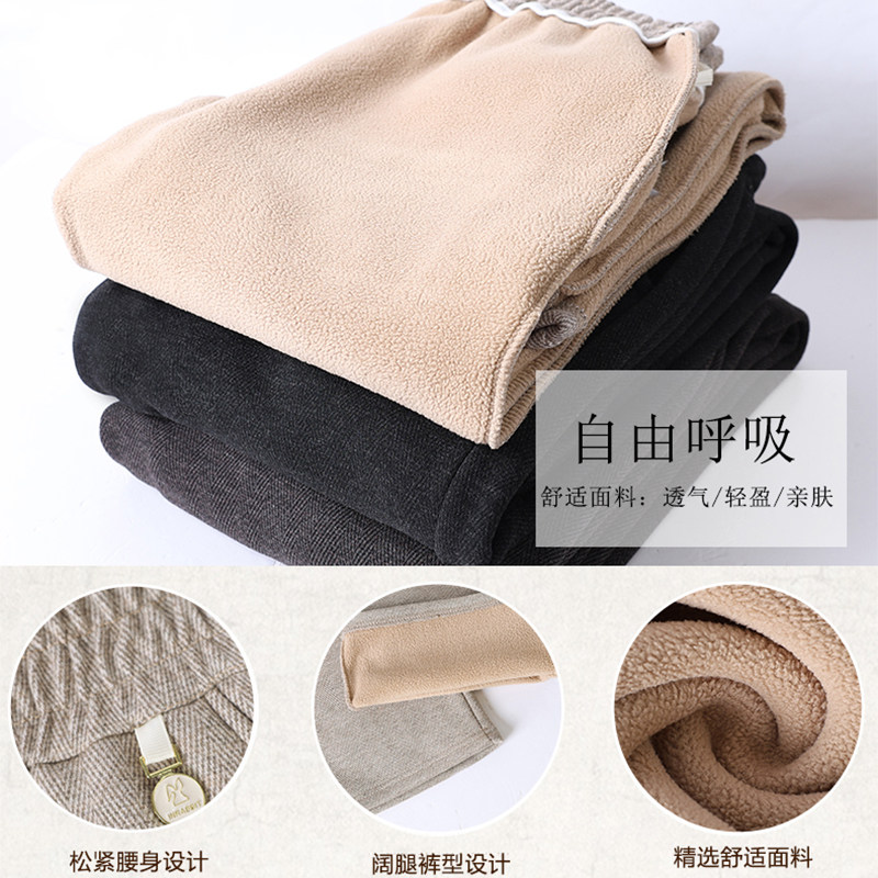 雅鹿中老年人妈妈秋冬装直筒长裤女奶奶宽松加绒加厚裤子小个子