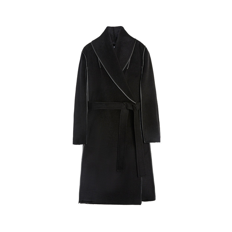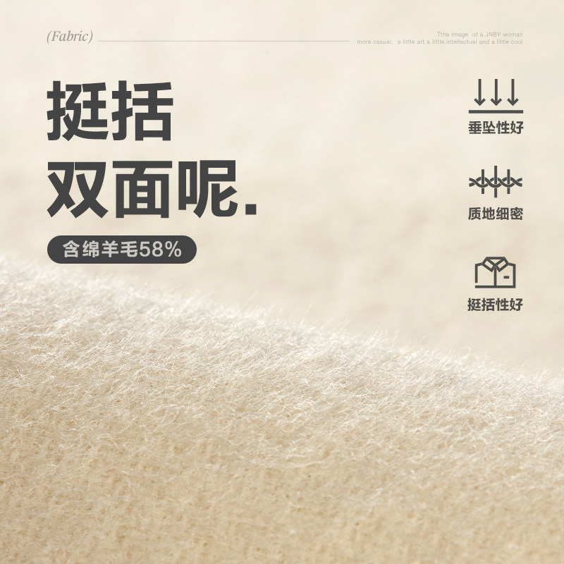 JNBY/江南布衣秋冬双面呢大衣女长款宽松休闲翻领气质通勤外套